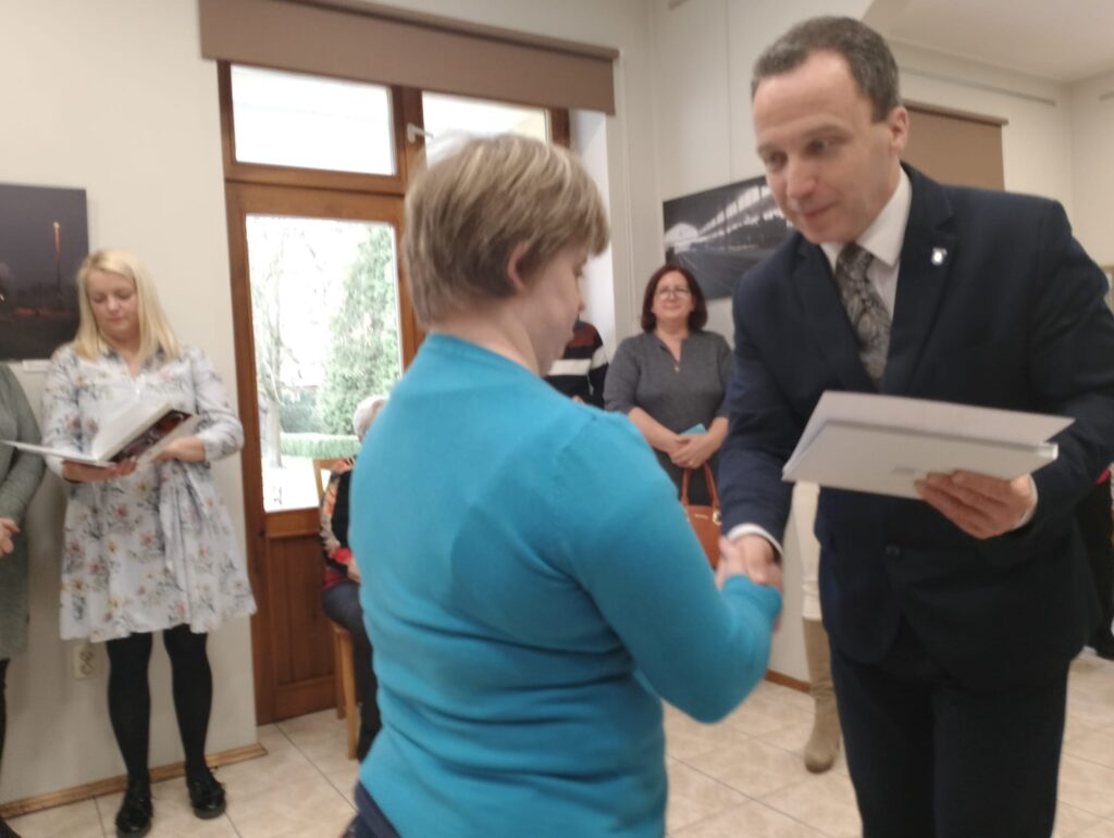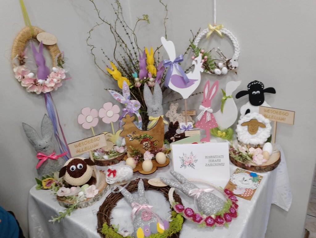 Swoje stoisko wielkanocne przygotowali też uczestnicy Warsztatów Terapii Zajęciowej w Wolsztynie. Burmistrz paniom, które przygotowały stoły wielkanocne wręczył podziękowania. Czas przedświątecznego spotkania z muzyką umili uczniowie Państwowej Szkoły Muzycznej I Stopnia w Wolsztynie-Emilia i Paweł. Na akordeonie zagrał Sebastian. Gości przybyłych na otwarcie wystawy stołów wielkanocnych podjęto kawą i pysznym ciastem w przygotowanym przez panie z KGW.