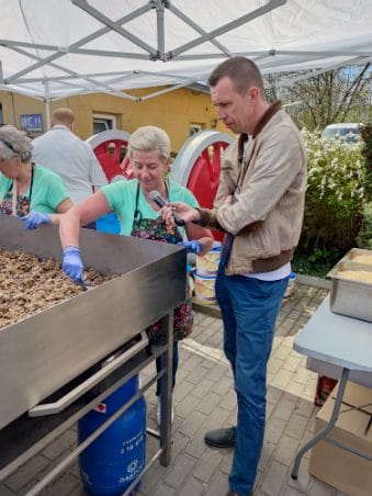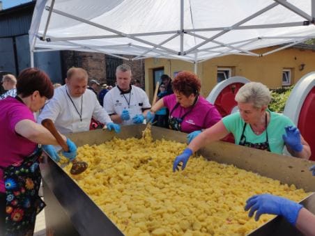 Starosta Jacek Skrobisz, wiceburmistrz Tomasz Spiralski oraz dyrektor Waldemar Ligma otworzyli Paradę Mini Parowozów, w skali 1 : 10 , które przypomniały lokomotywy znane z dotychczasowych (maxi ) parad. A taka odbędzie się w sierpniu. Przy parowozowni panie z Kół Gospodyń Wiejskich z Adamowa i Niałka przygotowywały się do pobicia rekordu najcięższej zapiekanki ziemniaczanej. Do zapiekanki panie włożyły ziemniaki parowane, cebulę, pieczarki i żółty ser. Trzeba było użyć podnośnika, aby zważyć gotową zapiekankę. Udało się. Padł rekord, zapiekanka ważyła 203 kg. Osoby przebywające w parowozowni degustowały ,,rekordzistkę”. Do parowozowni przyjechały osoby z różnych zakątków Polski. Poza zapiekanką, raczyli się między innymi pyrami z gzikiem. Turyści z Krakowa jedli je po raz pierwszy. Całą imprezę przygotowała Parowozownia Wolsztyn.