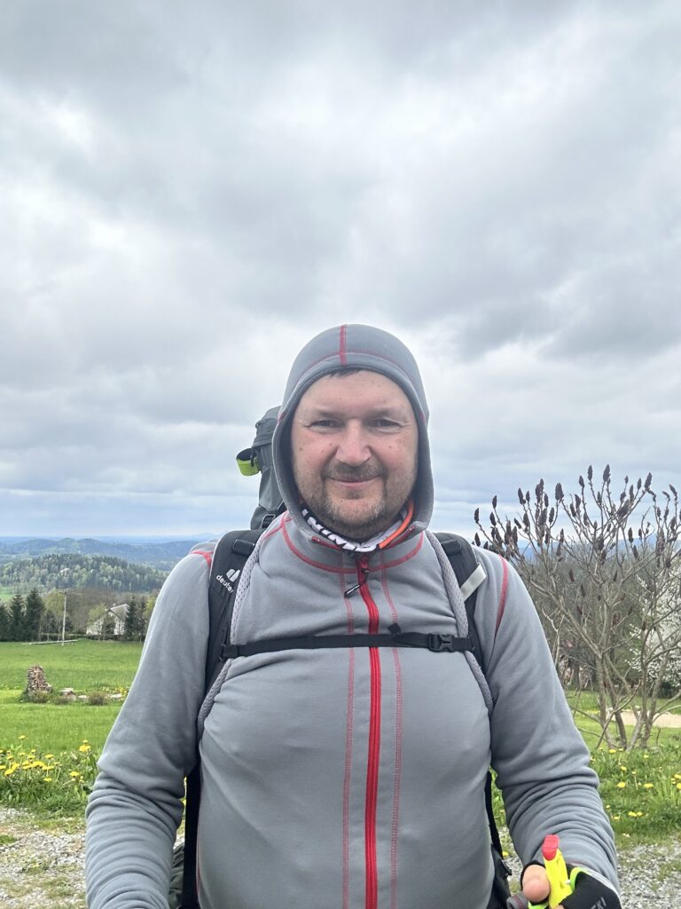 Żona Ewelina przygotowała dla pana Marka wegetariański tażyn i razem spędzili wieczór przy ognisku. A oto relacja pana Rafała Dziedzica: Pierwszą noc pan Marek spędził w lesie niedaleko Lubiatowa. Następnego dnia nocował w Głogowie i z Głogowa doszedł do Polkowic. Odwiedził piękne sanktuarium w Jakubowie, a także w Grodowcu. Dziś w niedzielę 7 maja rozmawiałam z panem Markiem. Był już w Czechach po przebyciu trasy w Niemczech. Wspomniał, że w w Bolesławcu przyjęły go siostry zakonne, a w Niemczech nocował w Domu Pielgrzyma.