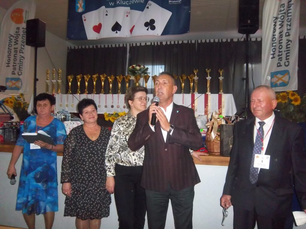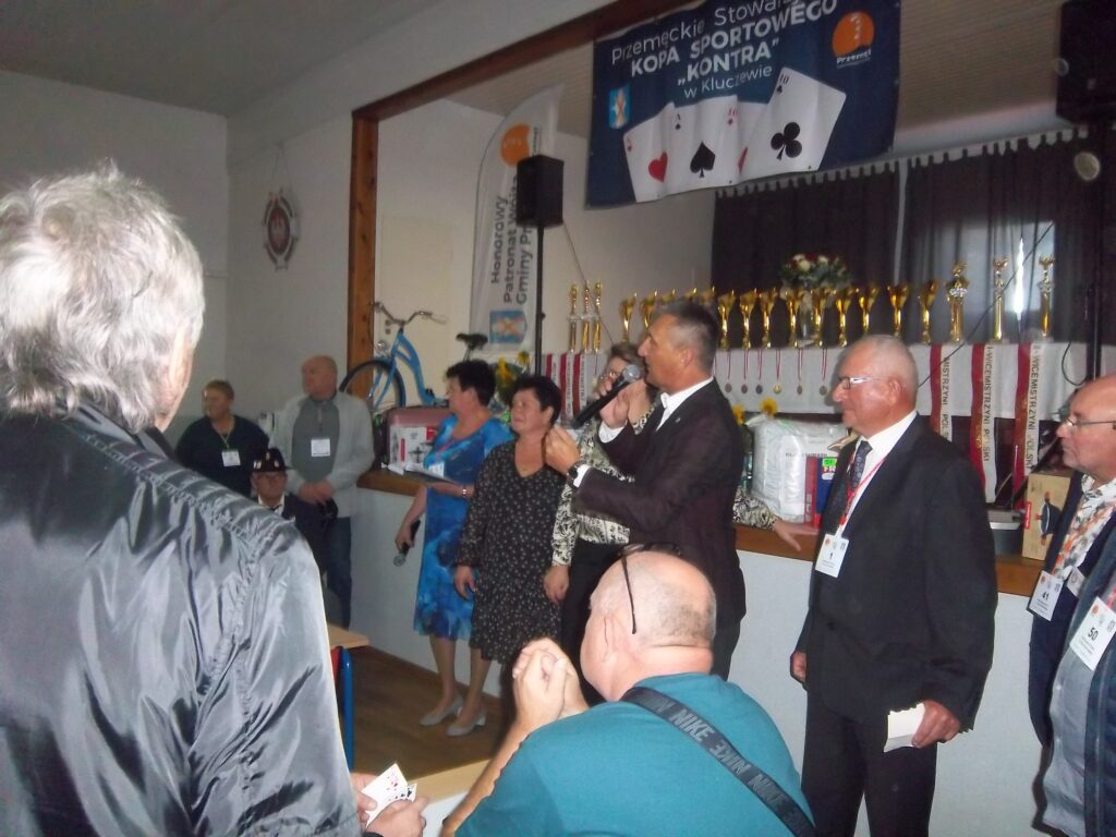 Wójt wręczył upominki graczowi, który miał najdalej do Kluczewa (154 km) i pani ( 60 km). Miłym akcentem były życzenia złożone z okazji 50 rocznicy ślubu pp. Zdzisławowi i Zofii Kaźmierczakom. Sędzia Mistrzostw Jerzy Piechowiak przedstawił ogólne zasady obowiązujące podczas turnieju. Poprosił, aby ewentualne nieporozumienia rozwiązywać przy stoliku gry. Po czym wójt J. Frąckowiak ogłosił- Mistrzostwa Polski w Kopa Sportowego za otwarte. Przy stolikach zasiadło 292 graczy w tym 12 pań. Organizatorzy przygotowali 60 nagród indywidualnych, po trzy nagrody dla trzech najlepszych drużyn, trzech par i trzech pań. Puchary i medale. Dla wszystkich uczestników przygotowany był obiad. Takiego wydarzenia w Kluczewie jeszcze nie było. Atmosfera wspaniała i spokój, Mistrzostwa przebiegały bez żadnych incydentów. Mistrzami Polski w rywalizacji drużynowej została drużyna KOŚCIANIACY, wicemistrzami drużyna DZIKI MIĘDZYCHÓD, a III miejsce przypadło drużynie GOŁĘBIE POKOJU. Rywalizacja w parach- I miejsce Wojciech Dyl i Włodzimierz Paroń z Międzychodu, II miejsce Włodek Słoma z Kościana i Krystian Matysik z Kajewa, III miejsce Eugeniusz Szroczyński z Wydorowa i Józef Fudali ze Śmigla. Mistrzynią Polski została Joanna Sobczyk z Włoszakowic, wicemistrzynią Gabriela Ceglarek ze Stęszewa, a II miejsce zajęła Małgorzata Staśkiewicz z Widziszewa. Mistrzem Polski został Włodzimierz Paroń z Międzychodu, wicemistrzem Krystian Matyjasik z Kajewa, a III miejsce zajął Lech Hampel z Nielągowa.