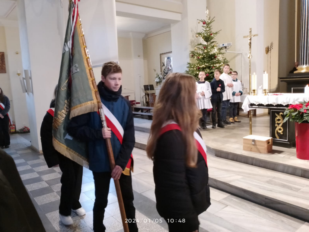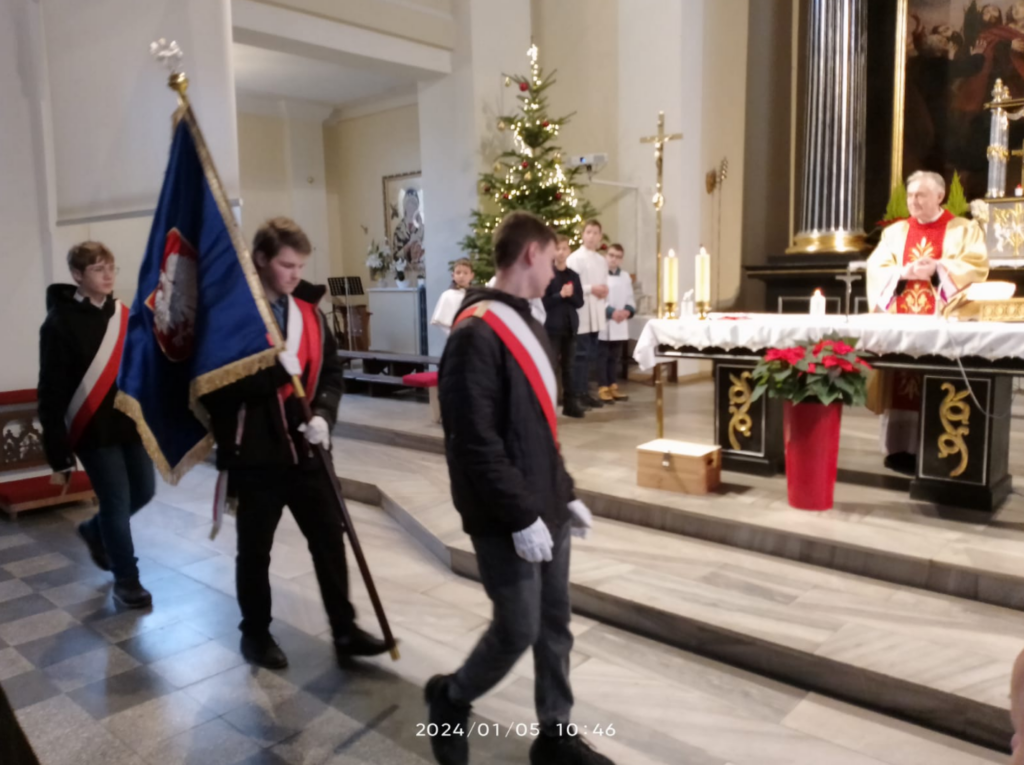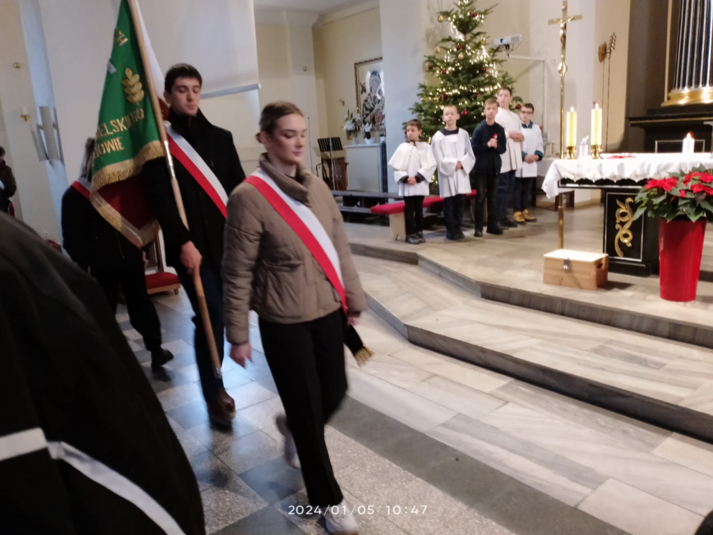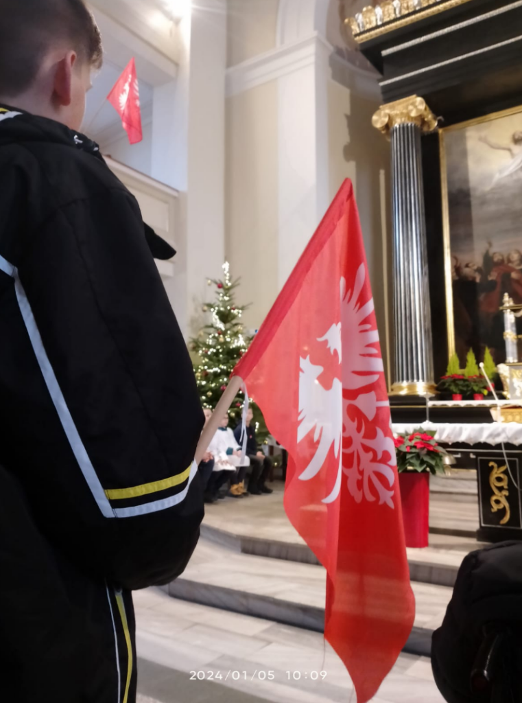Kościół pw. Wniebowstąpienia pańskiego, w dniu 5 stycznia, w którym to przypadła 105. rocznica wyzwolenia Wolsztyna przez Powstańców Wielkopolskich był biało-czerwony.