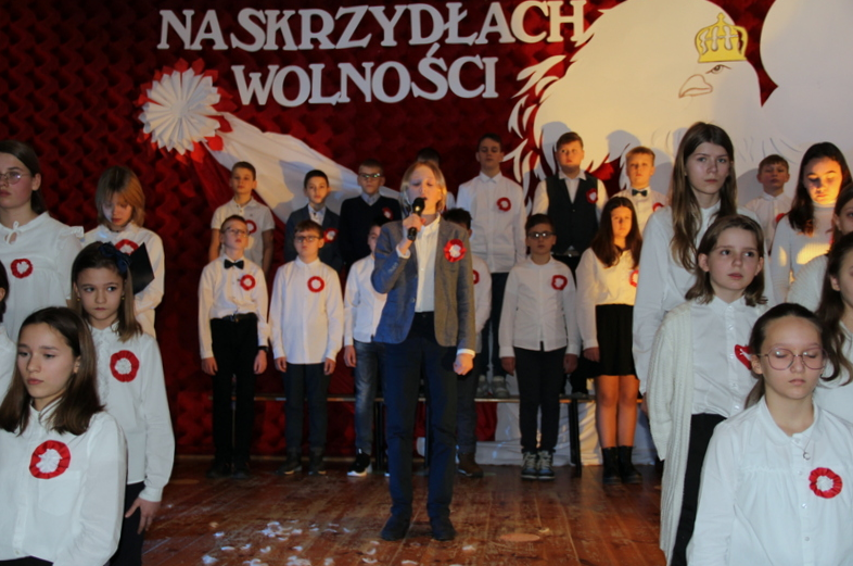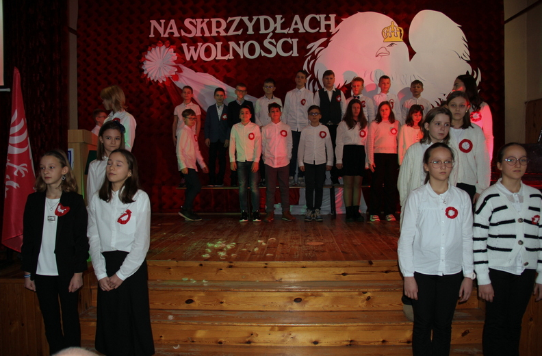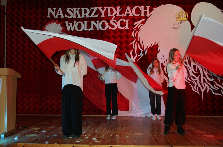 Ten patriotyczny program ,,Na skrzydłach wolności” przygotowali nauczyciele: Sylwia Walosik, Krzysztof Olszewski, Justyna Kubaczyk, Sylwia Strugała, Sylwia Kurp.