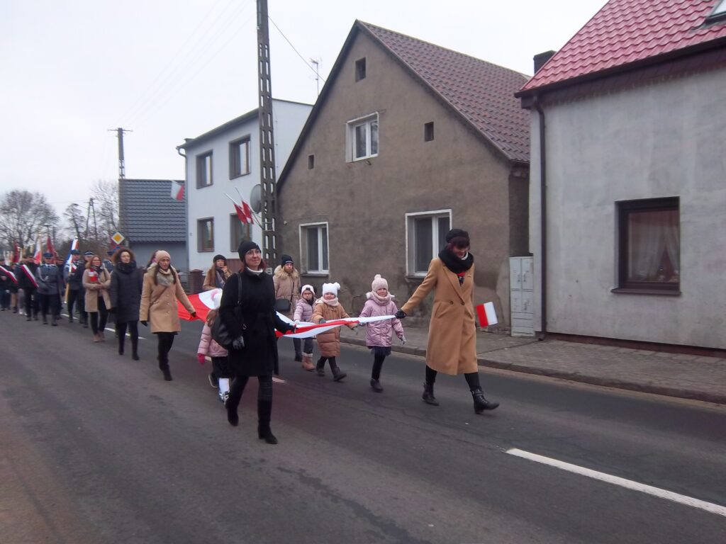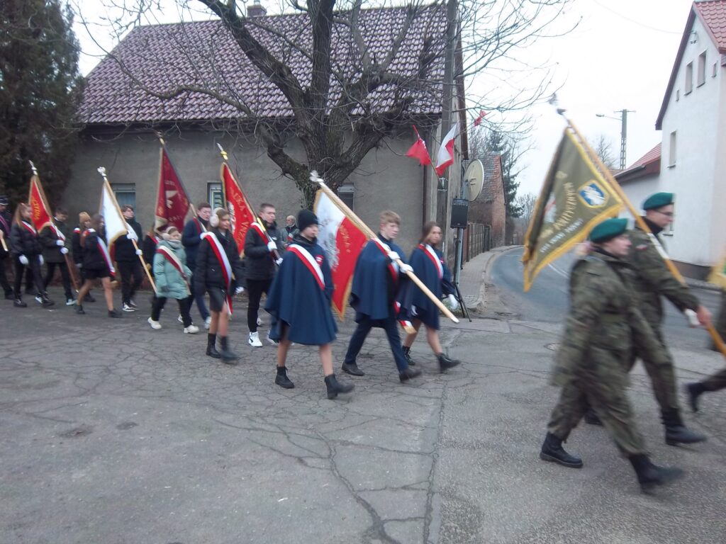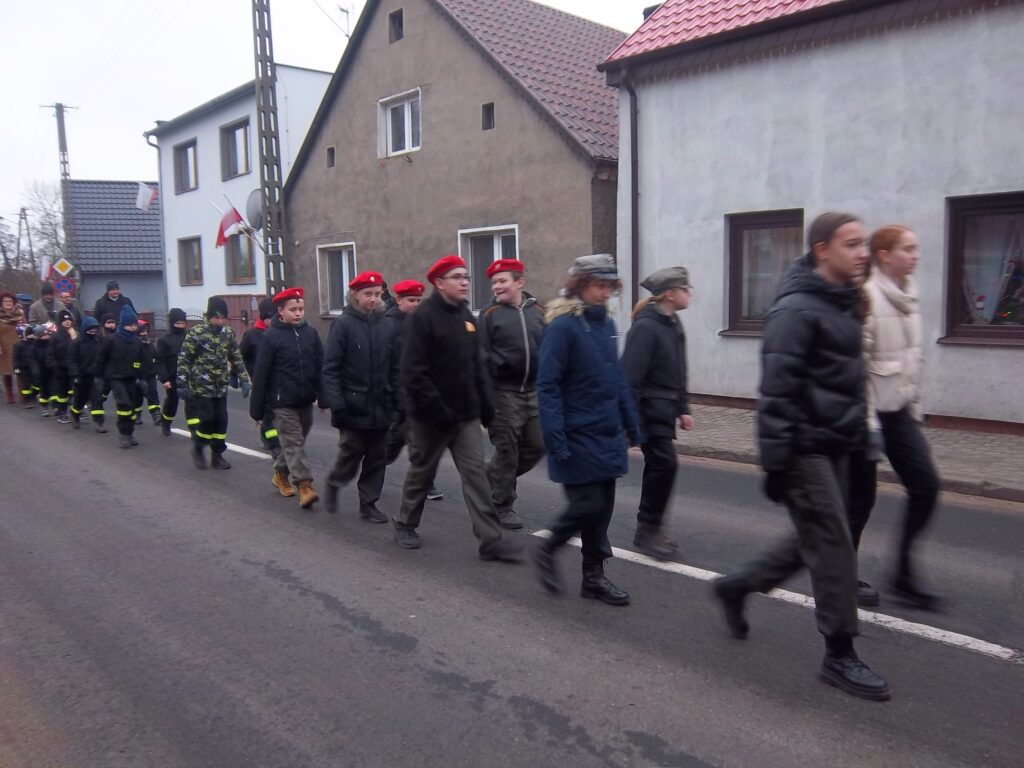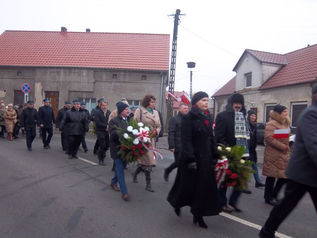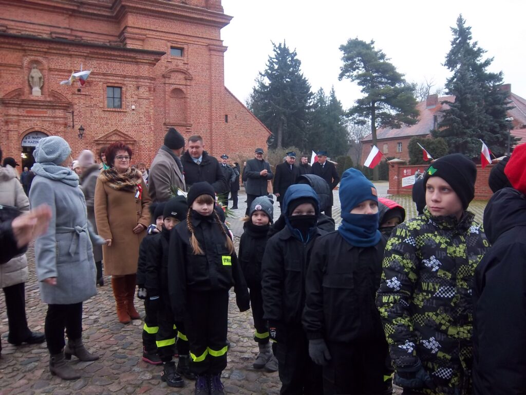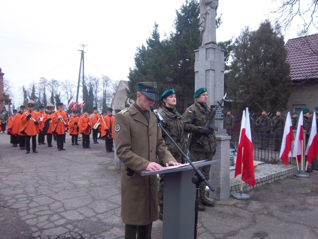 Liturgii towarzyszyła Młodzieżowa Orkiestra Dęta GCK i B w Przemęcie a także żołnierze V Lubuskiego Pułku Artylerii z Sulechowa. We Mszy św. uczestniczyli wójt Janusz Frąckowiak poseł na sejm Marcin Porzucek, samorządowcy, liczne delegacje z gminy i powiatu wolsztyńskiego, 24 poczty sztandarowe, zaproszeni goście i mieszkańcy. Podczas kazania ks. E. Jaworski nawiązał do uroczystości Objawienia Pańskiego. „ Pierwszymi ,którzy witali Jezusa byli pasterze. Bogu spodobało się, aby to oni byli pierwszymi tak, jak my teraz. Mędrcy starali się wykorzystać swoją wiedzę stąd ta wędrówka. Każdy z nas jest mędrcem, świadomie i dobrowolnie, każdy z nas musiał potwierdzić swoją przynależność wspólnoty z Jezusem. Zawsze jednak znajdzie się jakiś Herod, który będzie chciał tę wspólnotę zabić. Dzisiejszy dzień przynosi nam też miłość do Ojczyzny, miłość którą pokazuje nam film Najdłuższa Wojna Nowoczesnej Europy. Niebagatelną rolę odegrali też księża szczególnie w rozwoju bankowości, kółek rolniczych. Inspiracja do udziału w powstaniu odbyła się w tym kościele. „ Ksiądz proboszcz wspomniał także o ofiarach wojen i systemu w tym błogosławionego ks. Jerzego, aż do czwartego czerwca 1989 roku.” Starajmy się żyć tak, aby dzieci mogły się bawić spokojnie , abyśmy nie stali się niewolnikami. Żyć tak, aby nie zabić wspólnoty z Bogiem.” Wierni prosili o Boże błogosławieństwo dla niedocenianych służb mundurowych, za organizacje społeczne, o wieczne szczęście dla wszystkich obrońców naszej Ojczyzny. Księdzu proboszczowi za odprawioną mszę, a wszystkim za uczestnictwo podziękował wójt gminy Przemęt Janusz Frąckowiak. Przypomniał jak na wezwanie ks. Stanisława Kuliszaka z 500 ochotników została utworzona licząca ok. 120 osób Kompania Przemęcka. Przypominał, nazwiska dowódców ppor. Stanisława Siudę, ppor. Józefa Wróblewskiego i ppor. Stanisława Michalskiego. Odesłał do publikacji Antoniego Fornalskiego, który przybliżył historię tamtych dni i losy bohaterów naszej Małej Ojczyzny. Zacytował słowami jednego z największych Polaków wypowiedzi Jana Pawła II w publikacji ,,Pamięć i tożsamość”- „Patriotyzm oznacza umiłowanie tego, co ojczyste, umiłowanie historii, tradycji, języka, czy samego krajobrazu ojczystego. Jest to miłość, która obejmuje również dzieła rodaków i owoce ich geniuszu. Próbą dla tego umiłowania staje się każde zagrożenie tego dobra, jakim jest Ojczyzna. Nasze dzieje uczą, że Polacy byli zawsze zdolni do wielkich ofiar dla zachowania tego dobra albo też dla jego odzyskania”.