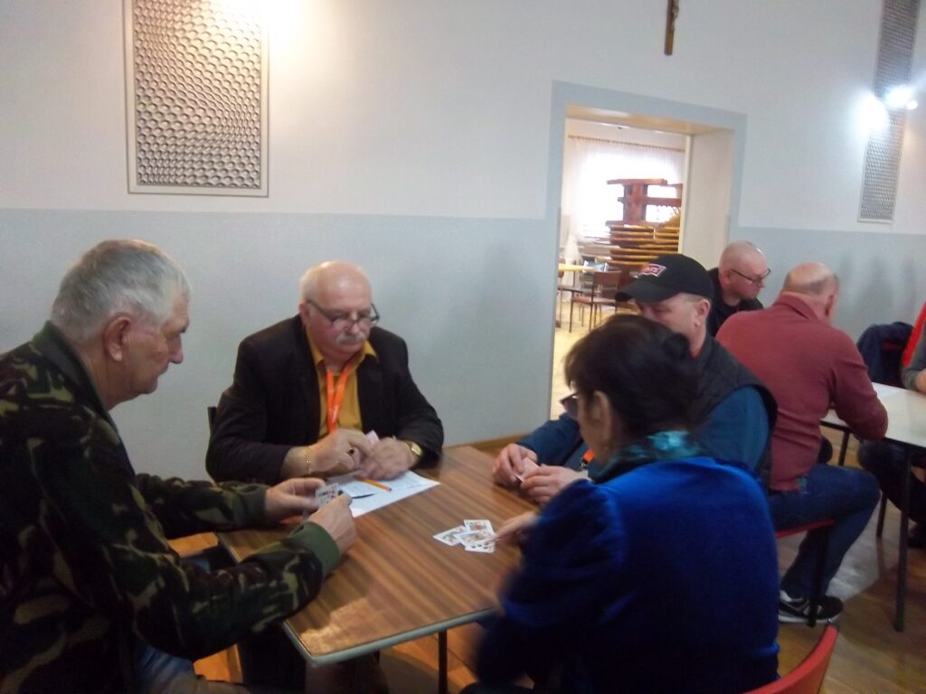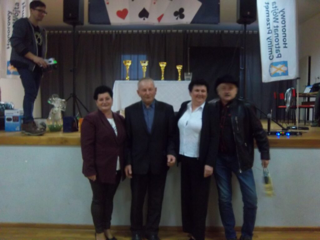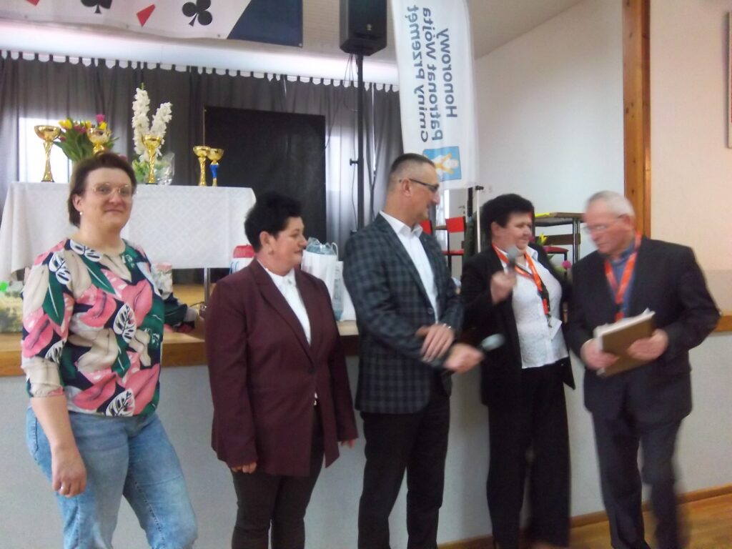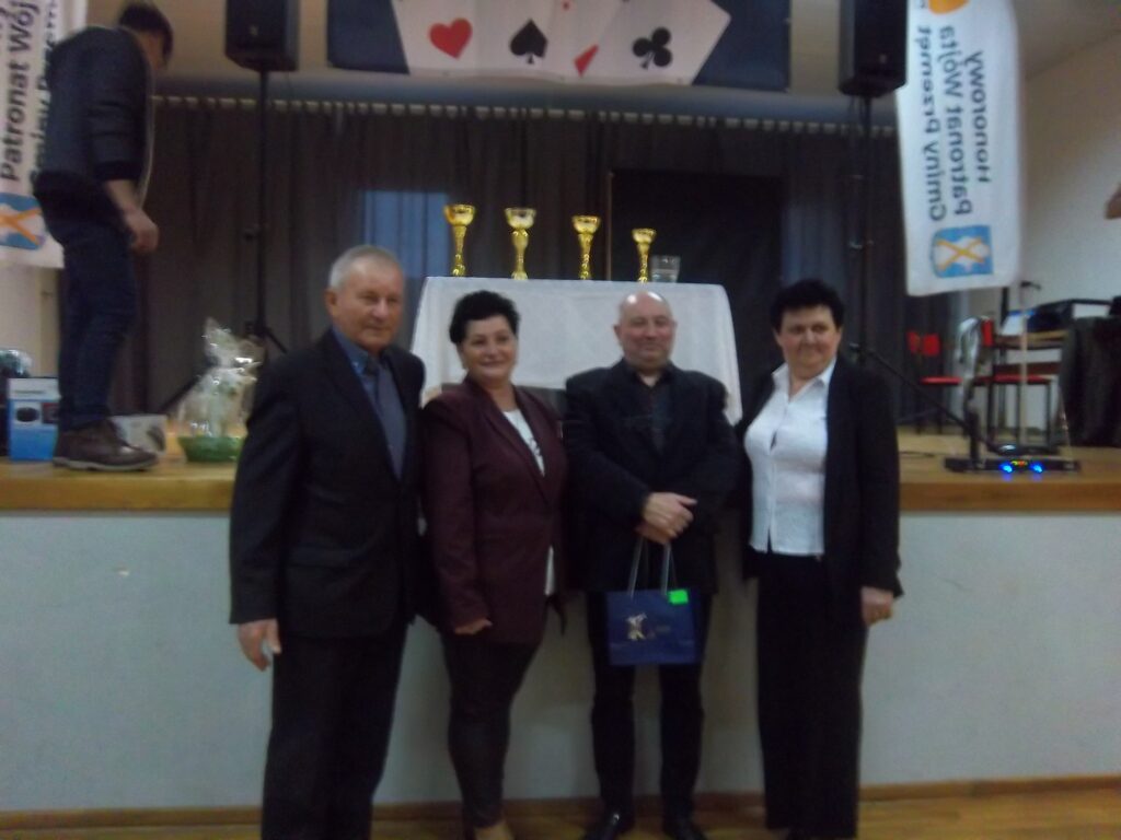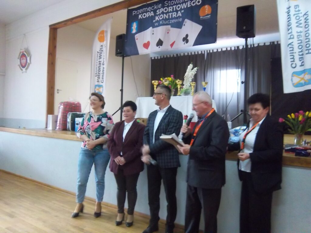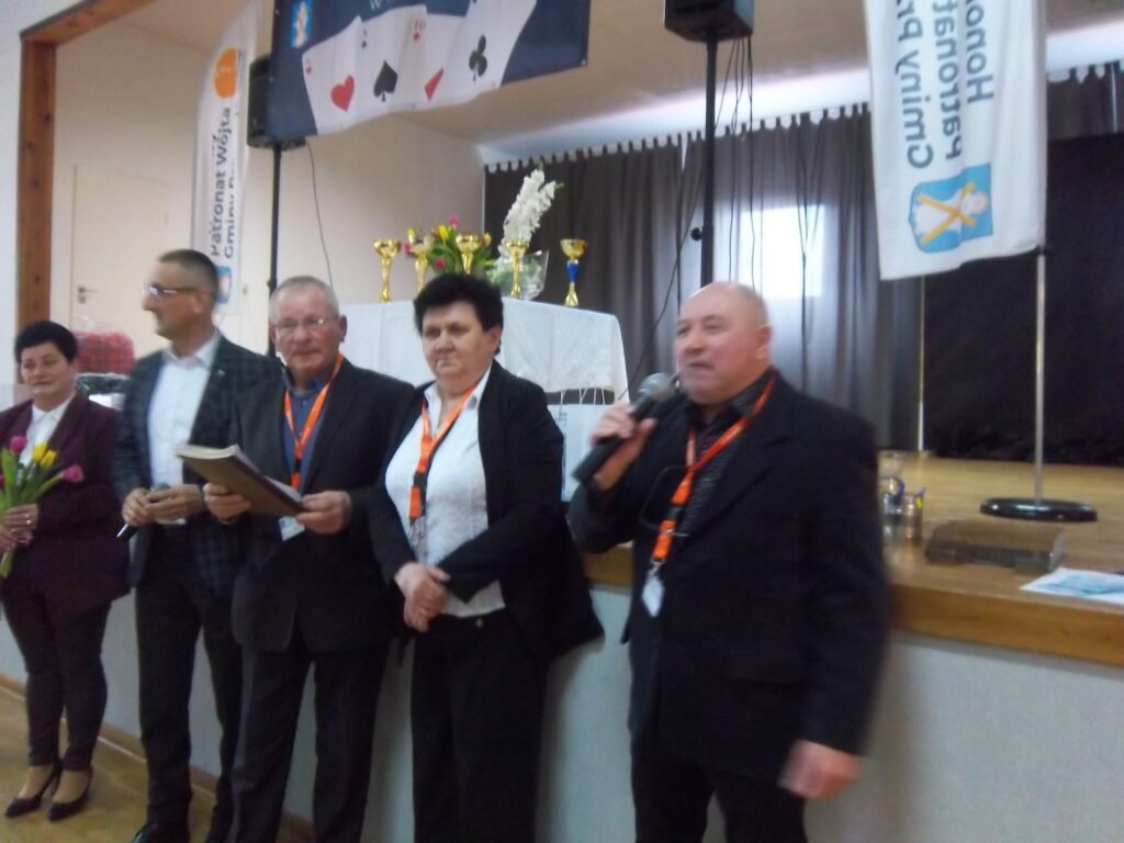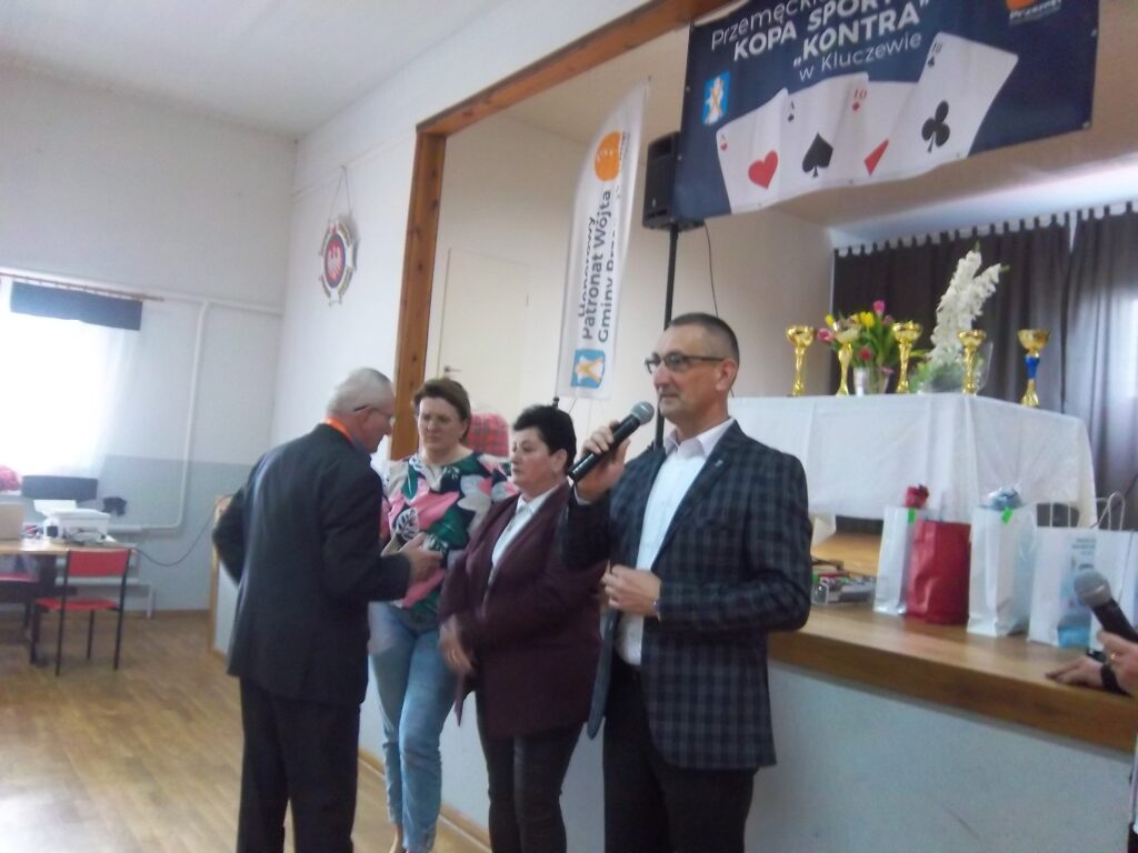 Prezes Stowarzyszenia Zdzisław Kaźmierczak powitał zebranych i honorowych gości: wójta Janusza Frąckowiaka, sołtysa Kluczewa, Jolantę Skoracką, radną Rady Gminy Hannę Dobijatę. Minutą ciszy uczczono pamięć kolegi Seweryna Kaczmarka, który w Kluczewie był na każdym turnieju. Prezes Kaźmierczak podziękował wójtowi za wspieranie działań w przygotowaniu turniejów , za ufundowanie nagród –„Liczymy, że nadal będziemy mogli liczyć na dobre słowo i wsparcie, bo dla nas to jest ważne”- dodał prezes. Wójt Janusz Frąckowiak, witając wszystkich zgromadzonych zapytał, czy wszyscy wiedzą czemu służą oklaski i wyjaśnił: ,,klaszczemy, a to sprawia, że ukrwione są palce rąk, a to z kolei sprawia, że mamy sprawne palce tak potrzebne do gry. Kto nie klaszcze sam sobie szkodzi”. Dziękuję, że tu w Kluczewie gromadzi się tylu chętnych, aby spędzić czas. Dziękuję p. Dance i p. Zdzisławowi, bo to oni są takimi osobami, którym warto pomagać, dziękuję za to, że im się chce. Życzę wspaniałej zabawy.”