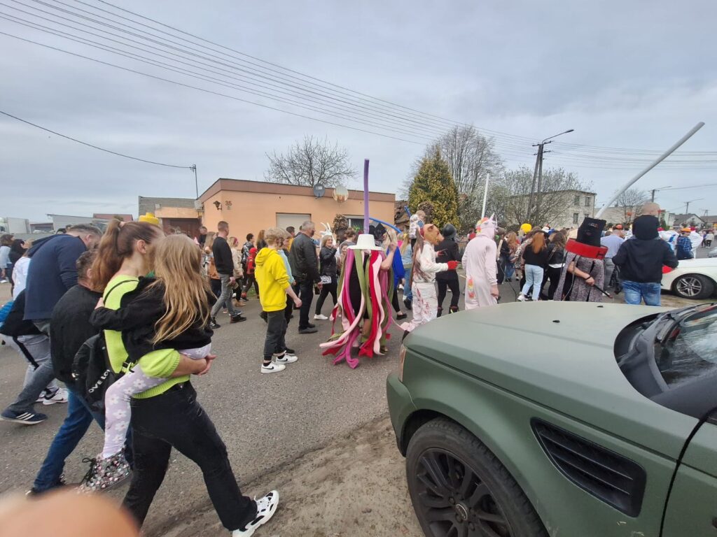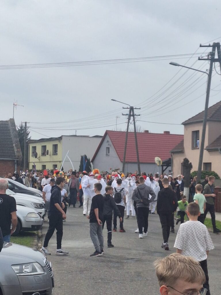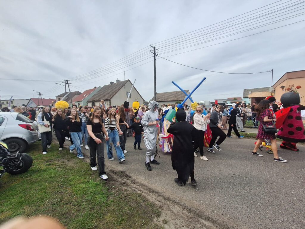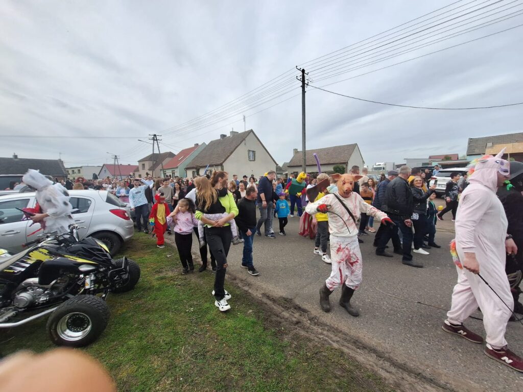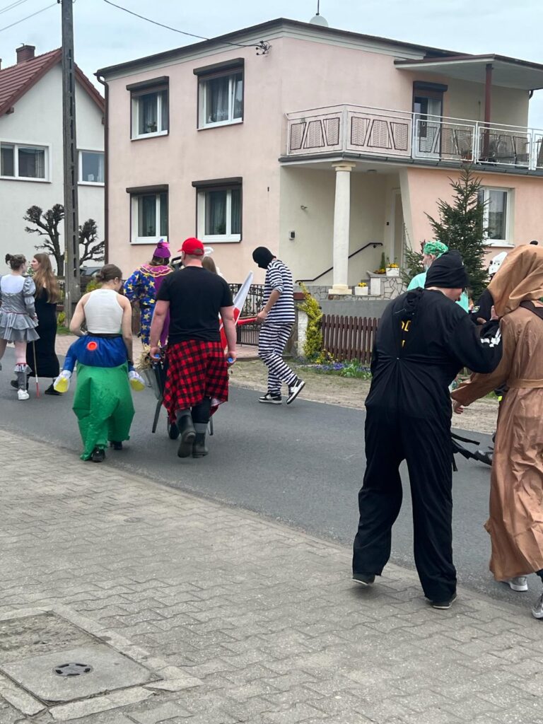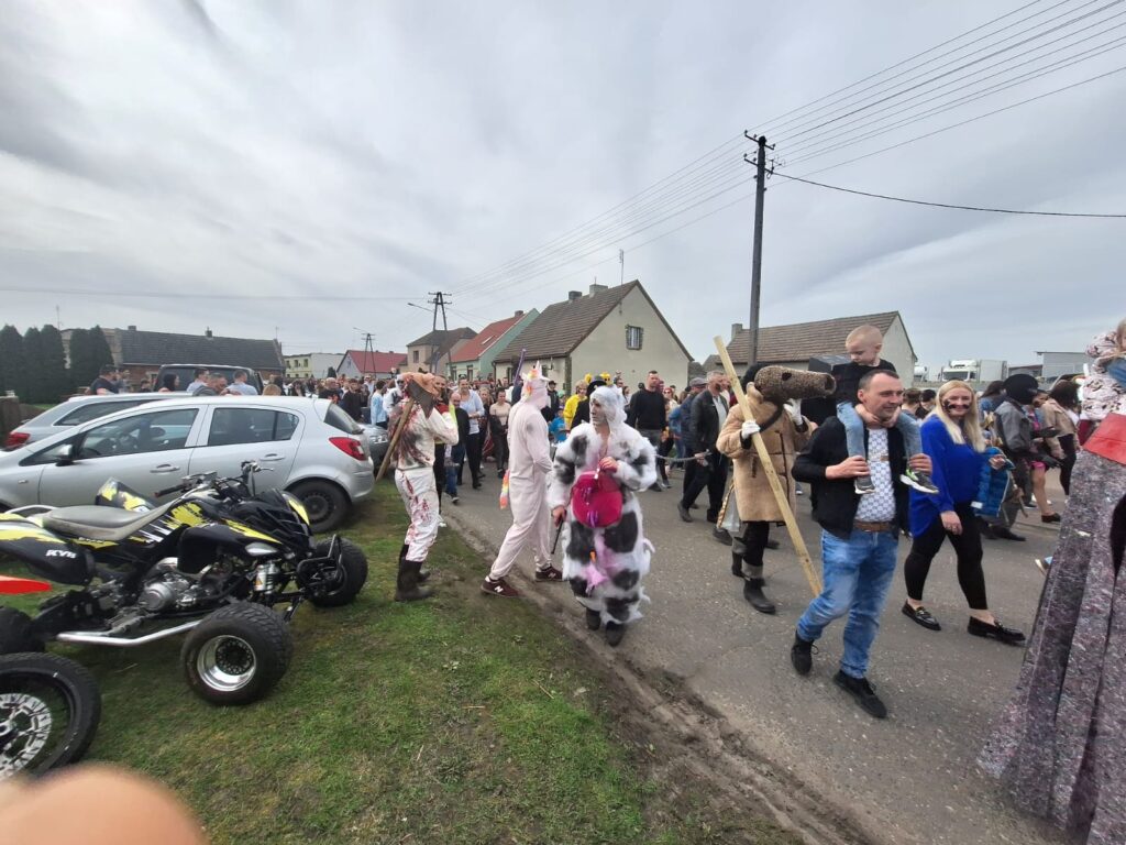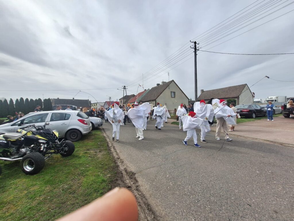 ,,Sokoła”. W pierwsze święto rozpoczynał się tzw. Dyngus. Kawalerowie chodzili od zagrody do zagrody, tam, gdzie były panny na wydaniu i polewali je wodą. Według powszechnego zwyczaju, panna, która była tego dnia sucha nie miała szans na wyjście za mąż. W drugie święto wielkanocne, przebierańcy gromadzili się na placu przy szkole wiejskiej. Korowód rozpoczynał duży Siwek przedstawiający białego konia z batem, następnie niedźwiedź, cały z plecionej słomy, prowadzony na łańcuchu przez tzw. Moryca, dziady, baby, kominiarze, którzy murzyli mieszkańców oraz cała rzesza innych przebierańców. Orszak ruszał w godzinach popołudniowych z orkiestrą na czele. Za nim liczne rzesze lokalnej społeczności, bawiąc się i tańcząc przy tym. W 1948 roku Katolickie Stowarzyszenie Młodzieży Męskiej zostaje rozwiązane przez Służbę Bezpieczeństwa. Od tego czasu patronat nad imprezą obejmuje Ochotnicza Straż Pożarna i Ludowy Zespół Sportowy. W tym roku pieczę nad imprezą miał sołtys wsi wraz z radą sołecką. Przebierańcy wyruszyli o godzinie 14.00 z placu przyszkolnego. Przebierańcy swoimi ubiorami zaskakują. Widać, że niektóre stroje są wypożyczane, jednak własnej inwencji twórczej też nie brakuje. W tym roku do Chorzemina zjechali mieszkańcy nie tylko gminy Wolsztyn, ale i powiatu.