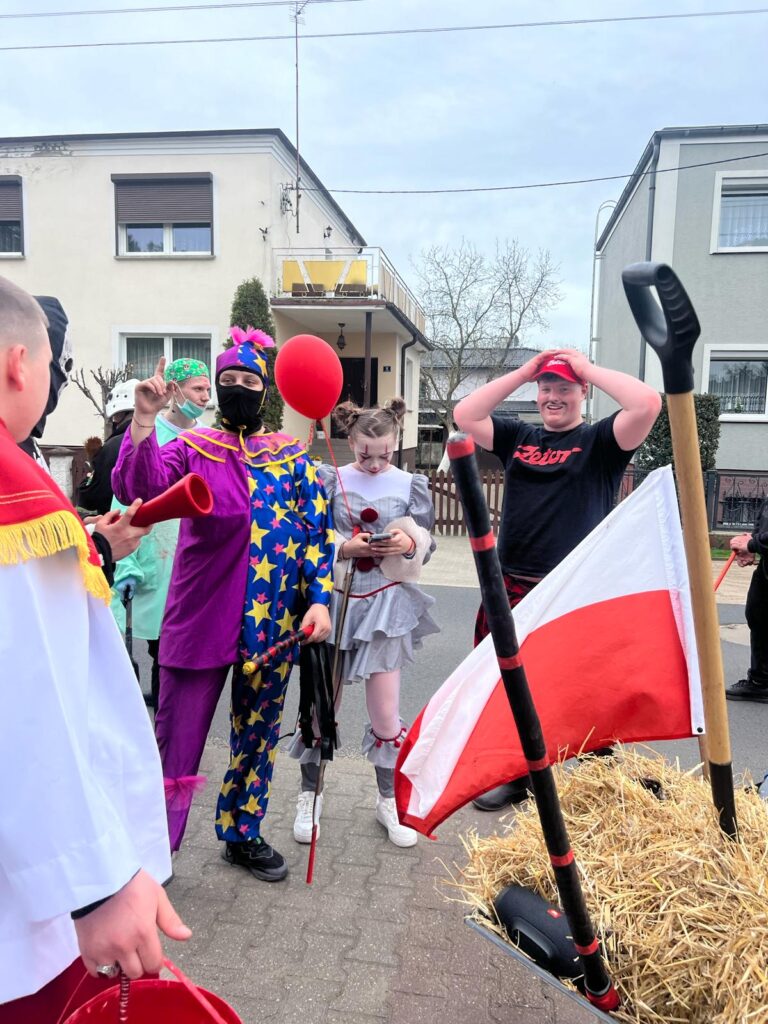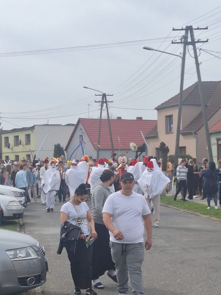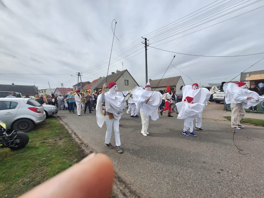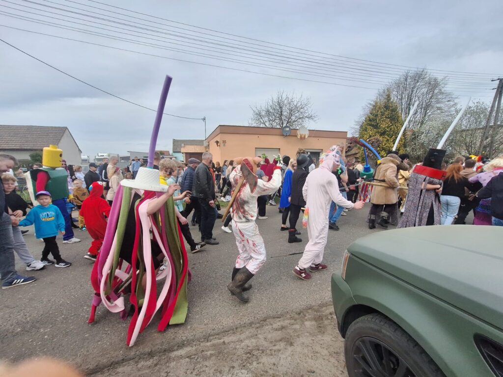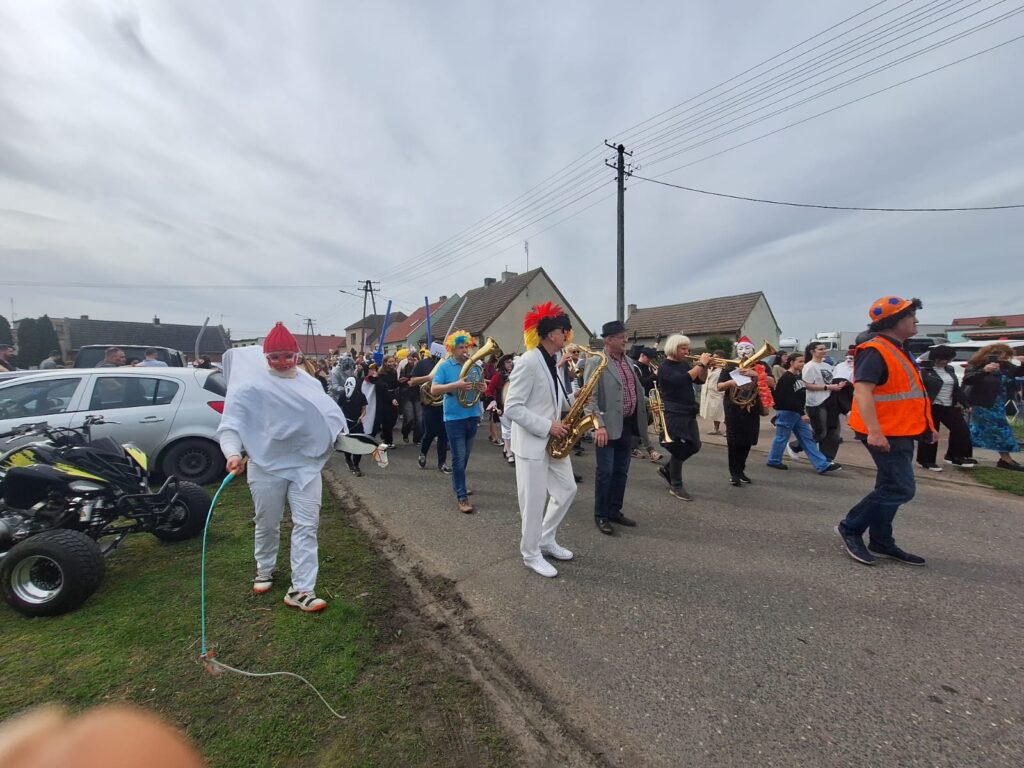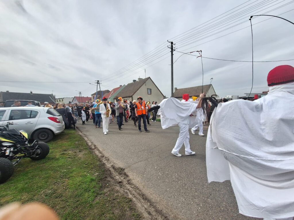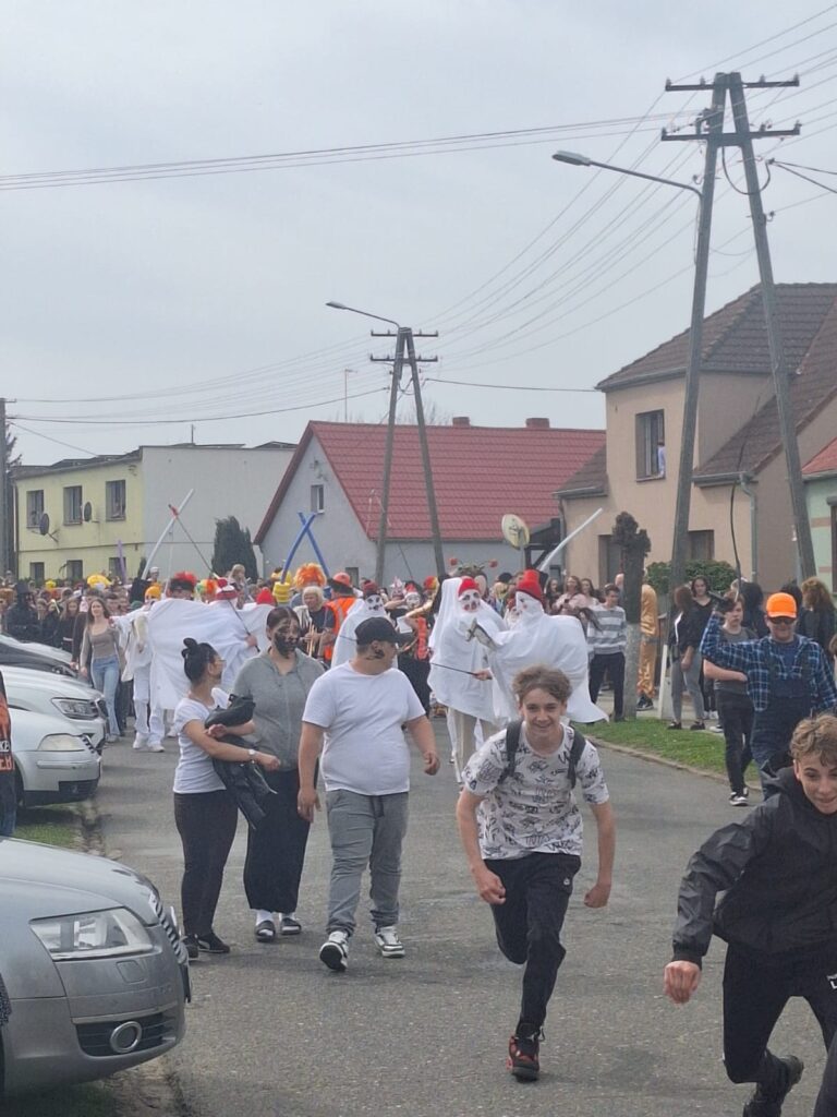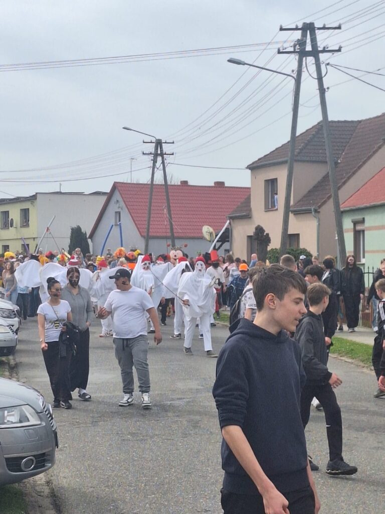 ,,Sokoła”. W pierwsze święto rozpoczynał się tzw. Dyngus. Kawalerowie chodzili od zagrody do zagrody, tam, gdzie były panny na wydaniu i polewali je wodą. Według powszechnego zwyczaju, panna, która była tego dnia sucha nie miała szans na wyjście za mąż. W drugie święto wielkanocne, przebierańcy gromadzili się na placu przy szkole wiejskiej. Korowód rozpoczynał duży Siwek przedstawiający białego konia z batem, następnie niedźwiedź, cały z plecionej słomy, prowadzony na łańcuchu przez tzw. Moryca, dziady, baby, kominiarze, którzy murzyli mieszkańców oraz cała rzesza innych przebierańców. Orszak ruszał w godzinach popołudniowych z orkiestrą na czele. Za nim liczne rzesze lokalnej społeczności, bawiąc się i tańcząc przy tym. W 1948 roku Katolickie Stowarzyszenie Młodzieży Męskiej zostaje rozwiązane przez Służbę Bezpieczeństwa. Od tego czasu patronat nad imprezą obejmuje Ochotnicza Straż Pożarna i Ludowy Zespół Sportowy. W tym roku pieczę nad imprezą miał sołtys wsi wraz z radą sołecką. Przebierańcy wyruszyli o godzinie 14.00 z placu przyszkolnego. Przebierańcy swoimi ubiorami zaskakują. Widać, że niektóre stroje są wypożyczane, jednak własnej inwencji twórczej też nie brakuje. W tym roku do Chorzemina zjechali mieszkańcy nie tylko gminy Wolsztyn, ale i powiatu.