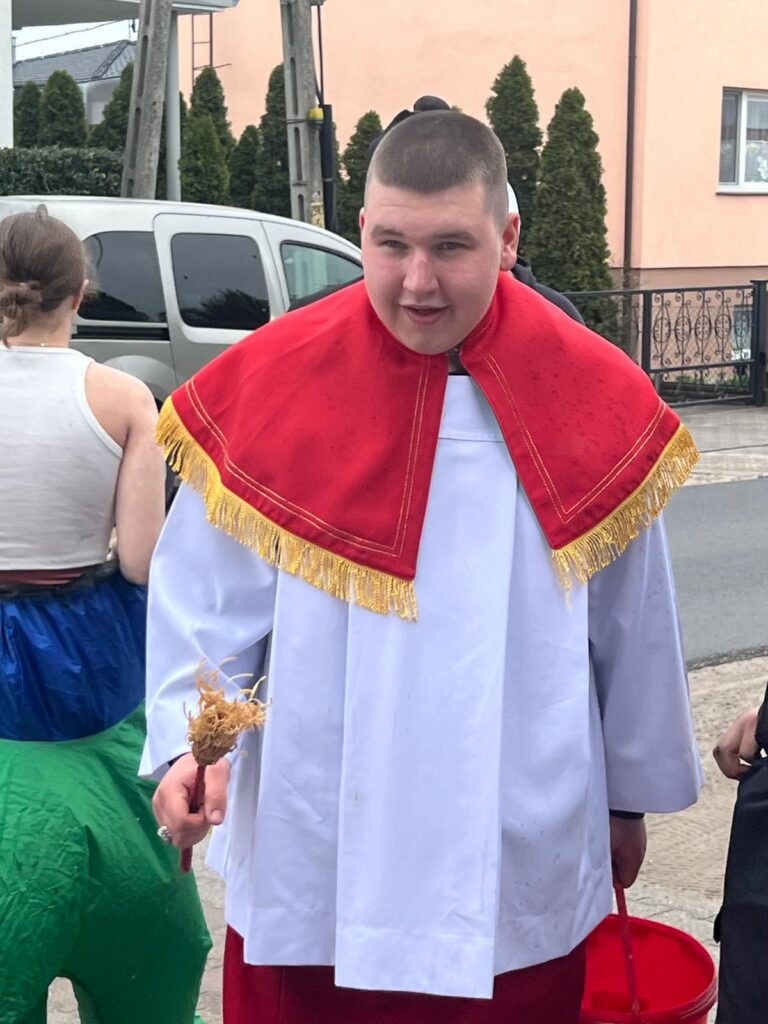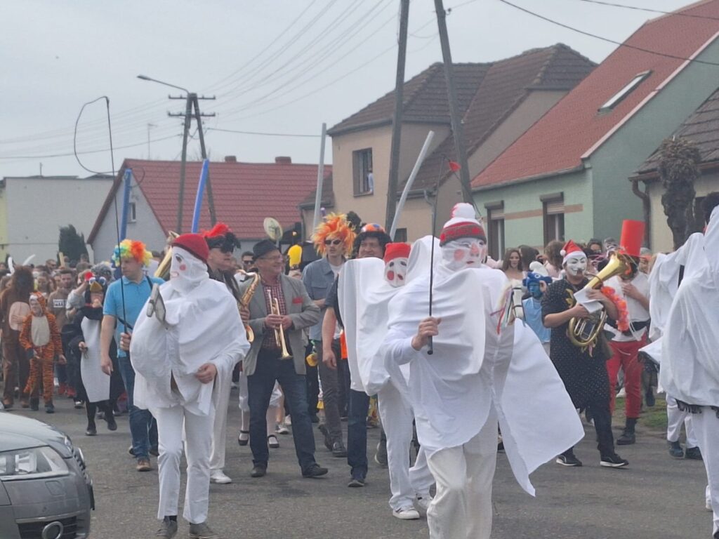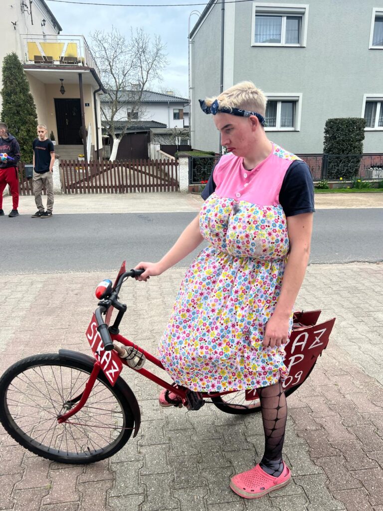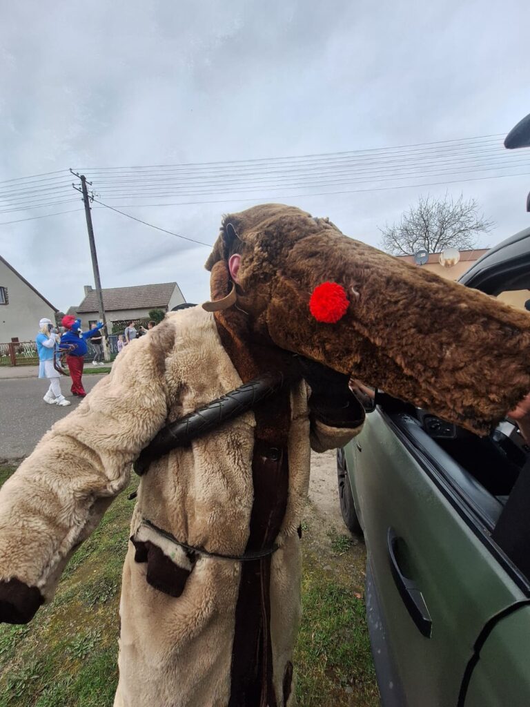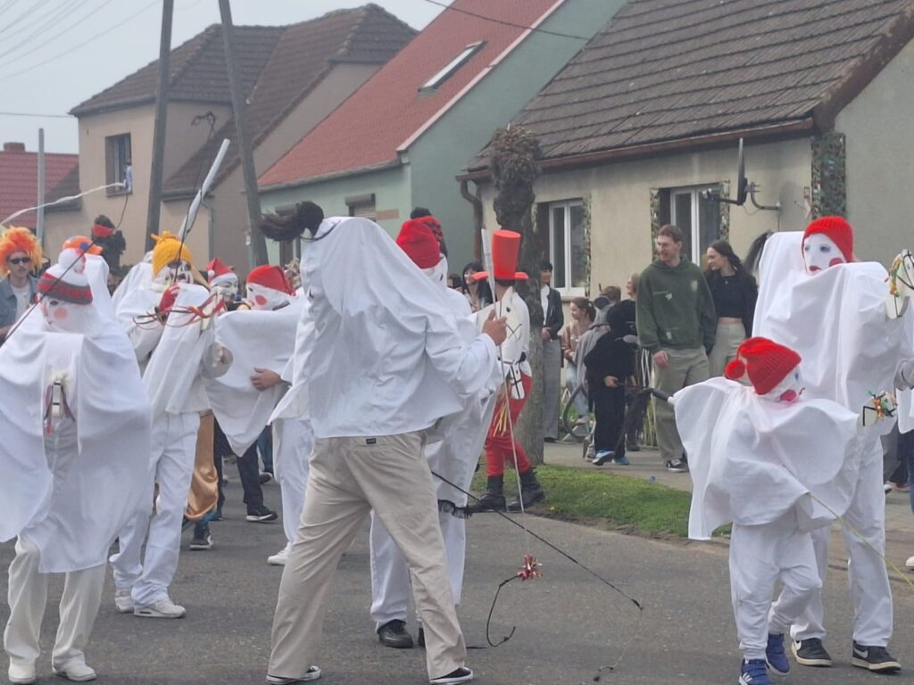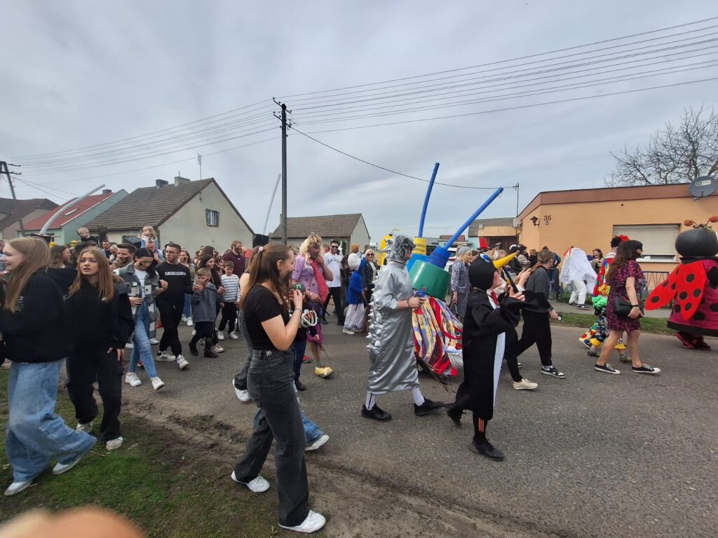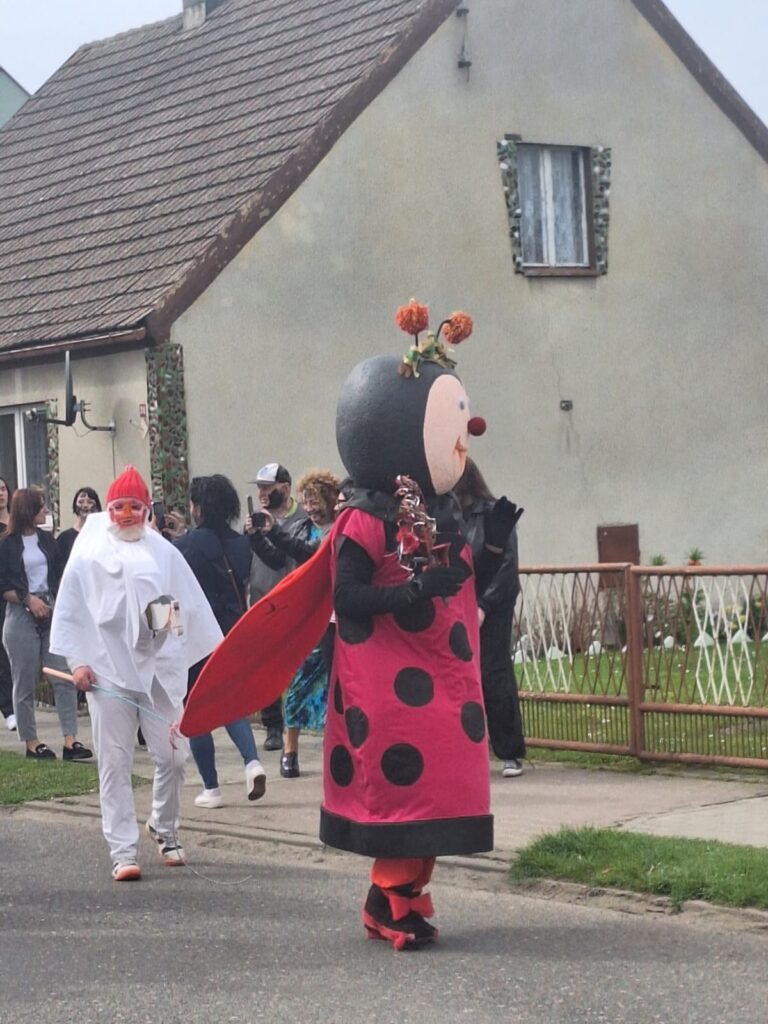 ,,Sokoła”. W pierwsze święto rozpoczynał się tzw. Dyngus. Kawalerowie chodzili od zagrody do zagrody, tam, gdzie były panny na wydaniu i polewali je wodą. Według powszechnego zwyczaju, panna, która była tego dnia sucha nie miała szans na wyjście za mąż. W drugie święto wielkanocne, przebierańcy gromadzili się na placu przy szkole wiejskiej. Korowód rozpoczynał duży Siwek przedstawiający białego konia z batem, następnie niedźwiedź, cały z plecionej słomy, prowadzony na łańcuchu przez tzw. Moryca, dziady, baby, kominiarze, którzy murzyli mieszkańców oraz cała rzesza innych przebierańców. Orszak ruszał w godzinach popołudniowych z orkiestrą na czele. Za nim liczne rzesze lokalnej społeczności, bawiąc się i tańcząc przy tym. W 1948 roku Katolickie Stowarzyszenie Młodzieży Męskiej zostaje rozwiązane przez Służbę Bezpieczeństwa. Od tego czasu patronat nad imprezą obejmuje Ochotnicza Straż Pożarna i Ludowy Zespół Sportowy. W tym roku pieczę nad imprezą miał sołtys wsi wraz z radą sołecką. Przebierańcy wyruszyli o godzinie 14.00 z placu przyszkolnego. Przebierańcy swoimi ubiorami zaskakują. Widać, że niektóre stroje są wypożyczane, jednak własnej inwencji twórczej też nie brakuje. W tym roku do Chorzemina zjechali mieszkańcy nie tylko gminy Wolsztyn, ale i powiatu.