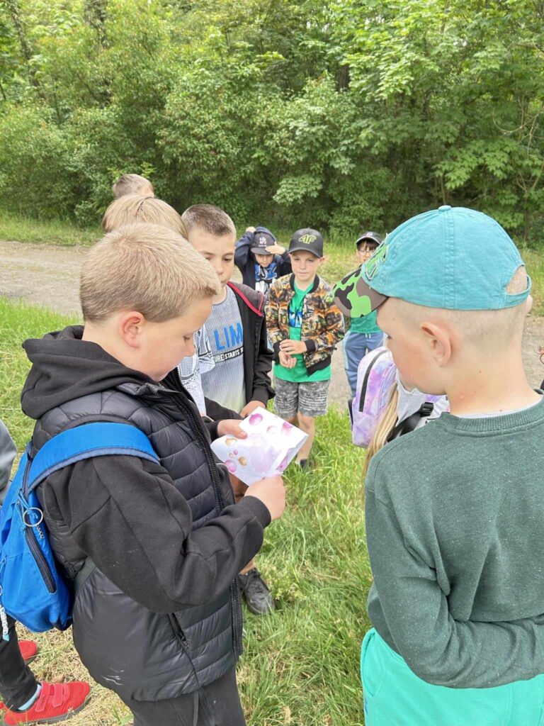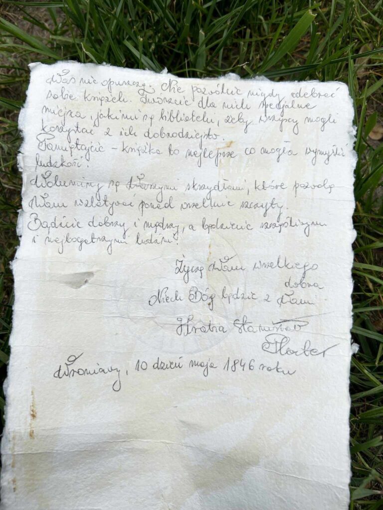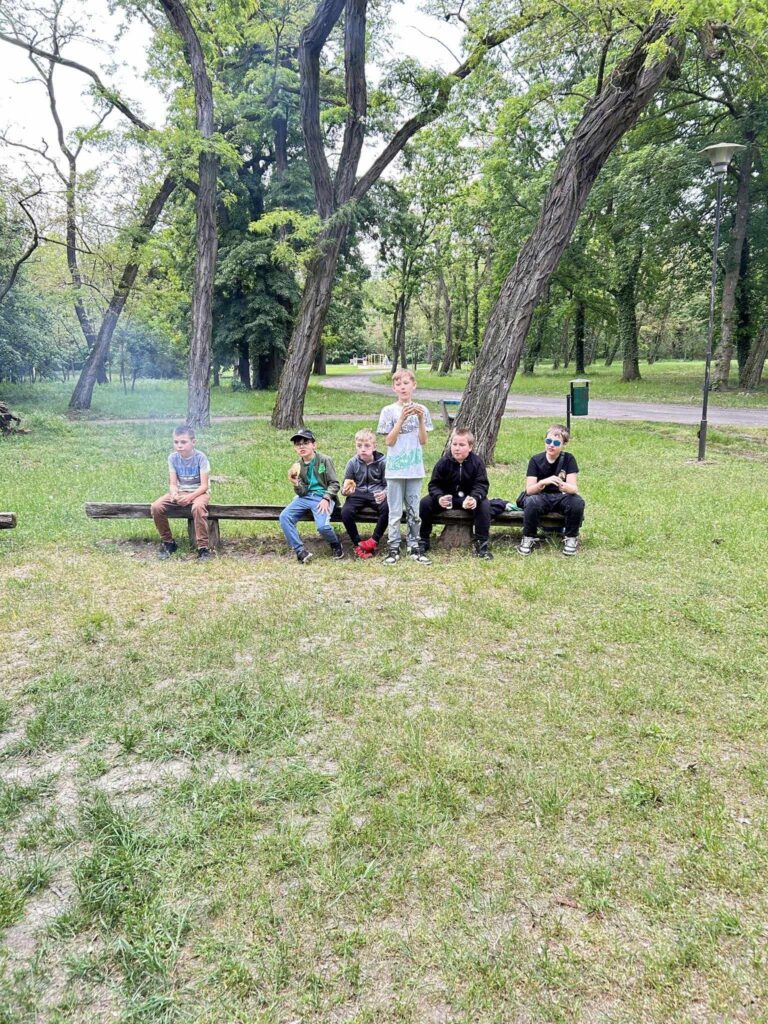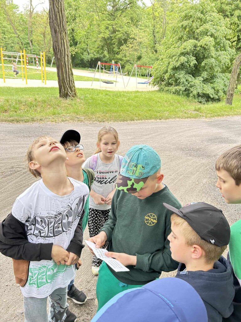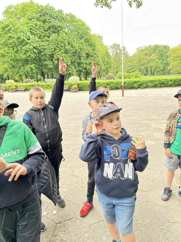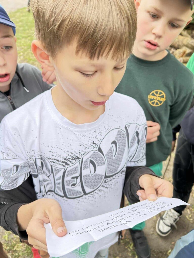 Na początek nasi mali poszukiwacze mieli za zadanie odszyfrować przesłanie od organizatorów. Nasi uczniowie musieli podołać różnym zadaniom ruchowym oraz rozwiązać zadania z wiedzy o bibliotece, Stanisławie Platerze i Polsce. Po odgadnięciu wszystkich łamigłówek dzieci odnalazły skarb. Były to różne gadżety, słodkości oraz list od Stanisława Platera. Nasz znakomity patron przekazał swoim potomnym co jest największym skarbem i co trzeba robić żeby być szczęśliwym człowiekiem. Dzieci wysłuchały „starego” listu z uwagą, a potem były zabawy na placu zabaw w pałacowym parku, a potem ognisko.