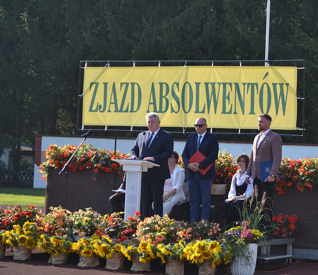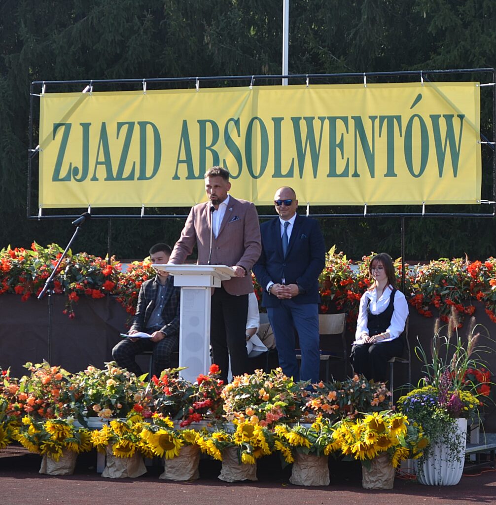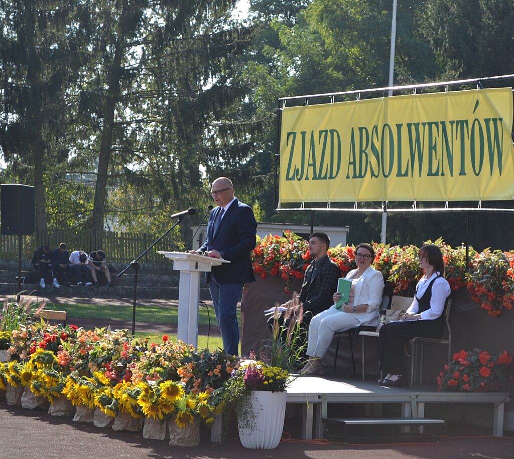 stwierdził, że przepracował z bardzo dobrym zespołem. Zaznaczył, że miał duże wsparcie od dyrektora Jerzego Rusina. Starosta Jacek Skrobisz w swoim wystąpieniu podkreślił dobrą współpracę z dyrektorami Jerzym Rusinem i Arturem Walczakiem- Mortezai oraz wyraził nadzieję na dobrą współpracę z obecnym dyrektorem. Burmistrz Dominik Tomiak zapraszał do współpracy. Dyrektor Jerzy Rusin mówił o swojej 27-letniej pracy na stanowisku dyrektora szkoły. Jego przemówienie przerywane było oklaskami jego dawnych uczniów, a obecnie już absolwentów. Dalsze część spotkanie absolwentów odbyła się w klasach, gdzie poszczególne roczniki miały okazję spotkać się ze swoimi wychowawcami i wspominać dawne lata szkolne. Wieczorem odbyła się biesiada absolwencka w przygotowanych na tę okazję namiotach.