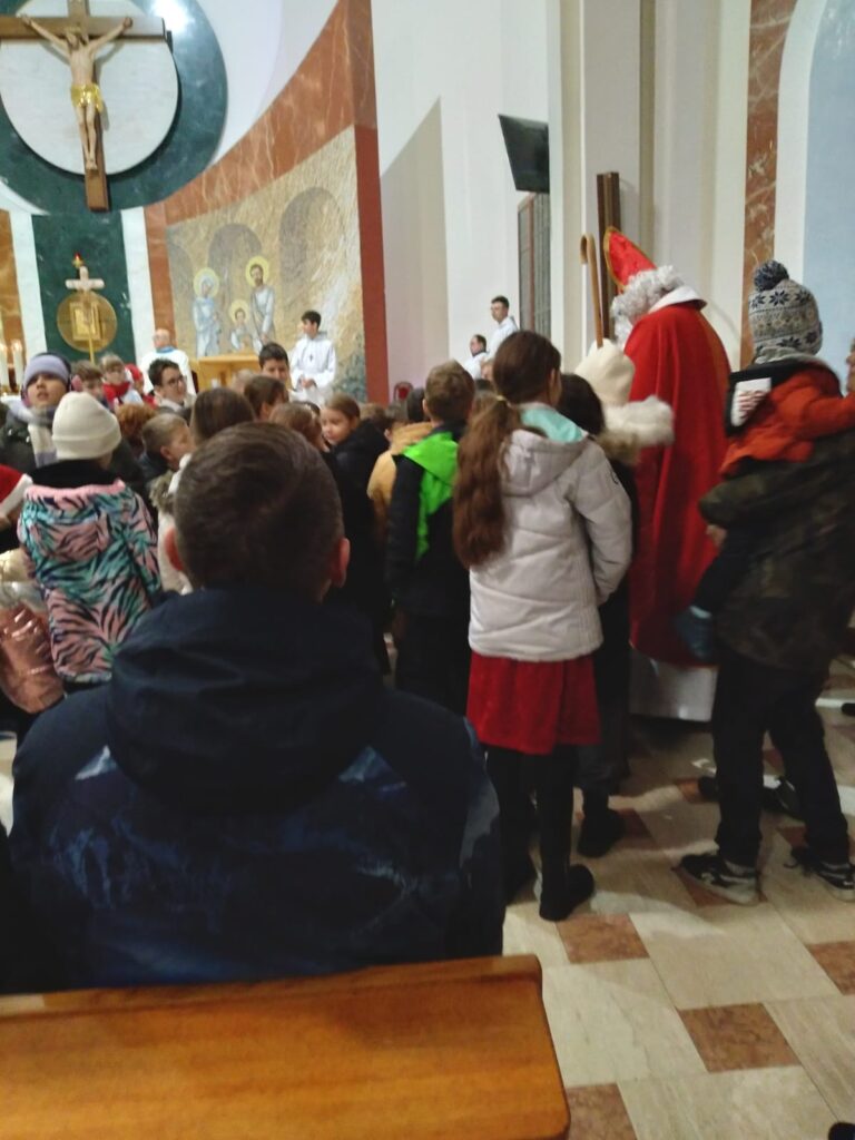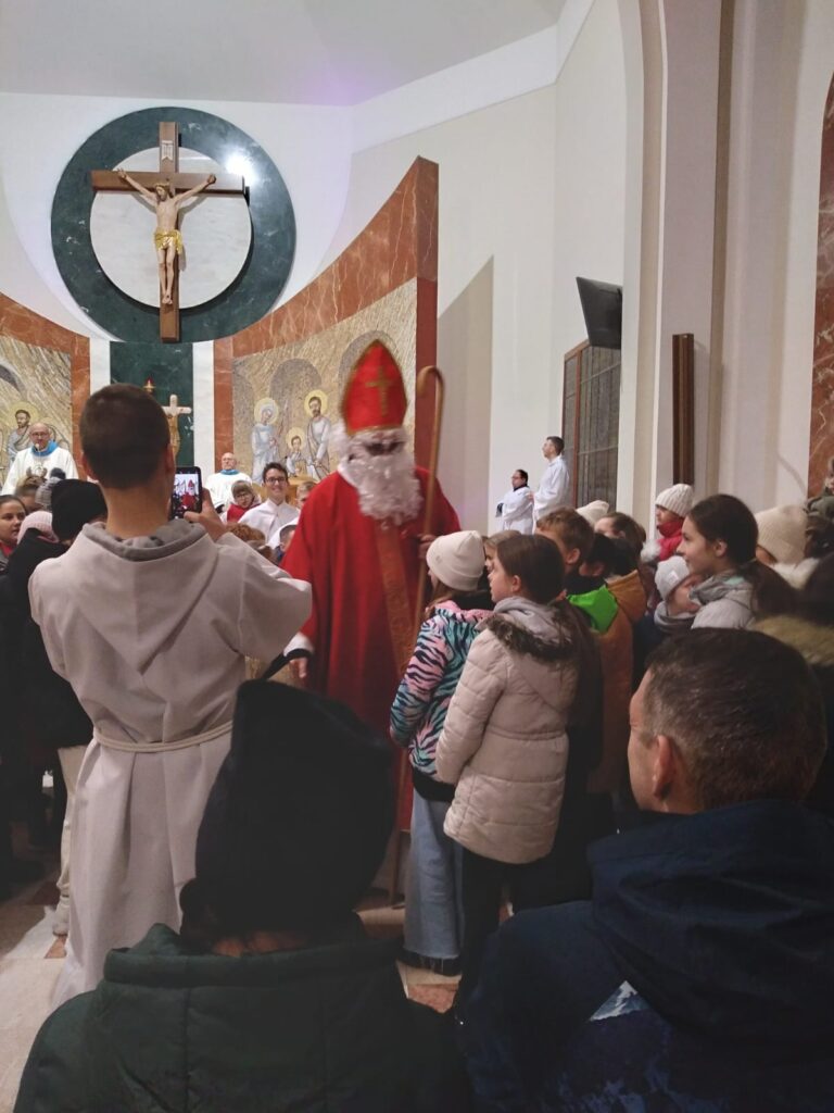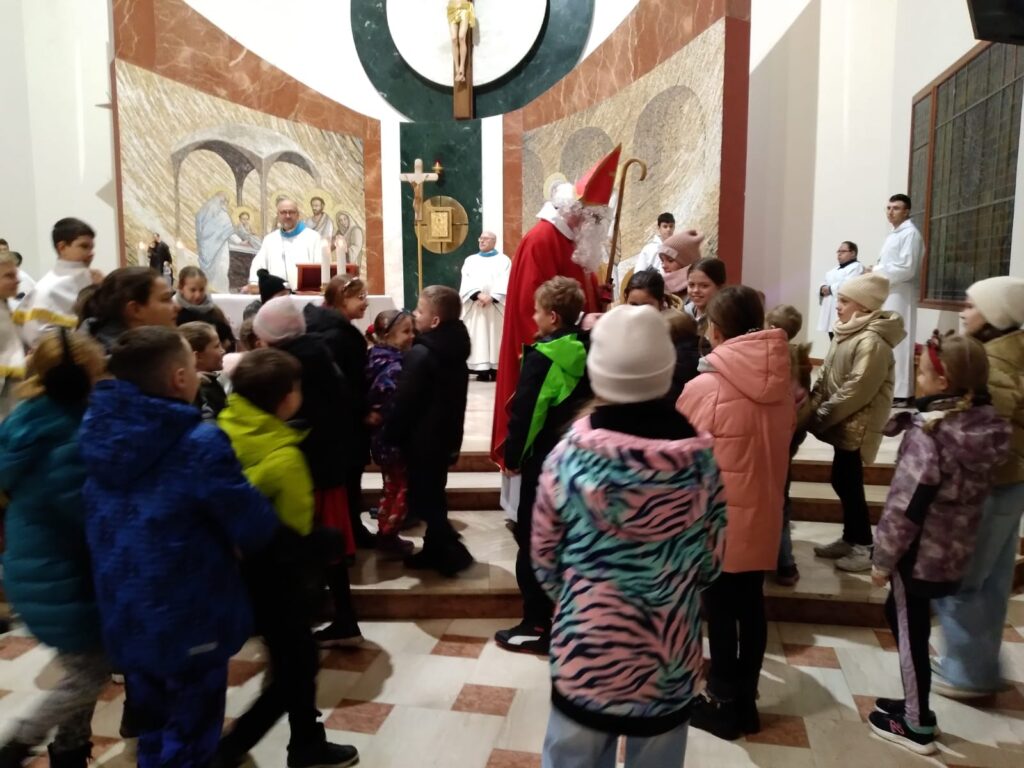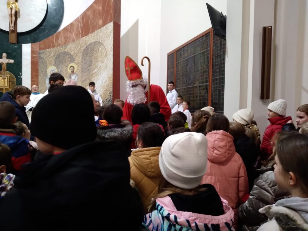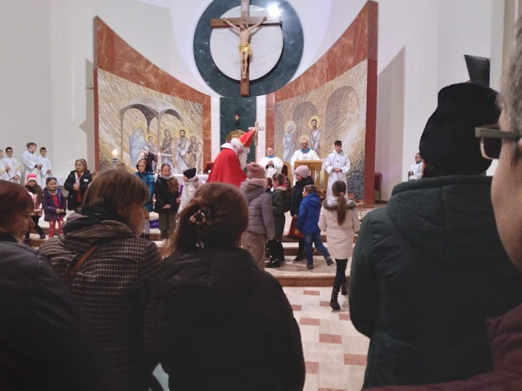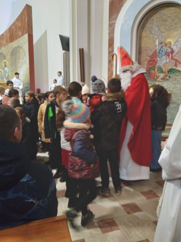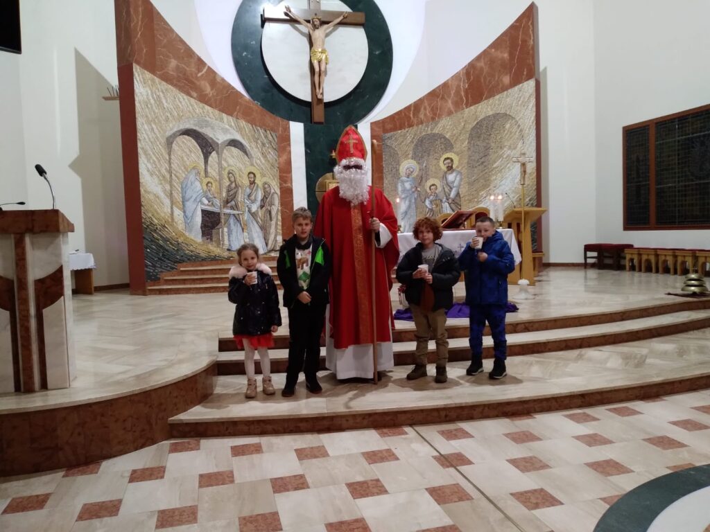Dziś 6. grudnia Święty Mikołaj zawitał do naszych domów, szkół, na wolsztyński Rynek, a także do Kościoła Świętego Józefa Opiekuna Kościoła Świętego. Przywitał się z dziećmi, które uczestniczyły w roratach, a potem zaprosił do salki kominkowej, gdzie na dzieci czekała gorąca czekolada z bitą śmietaną.