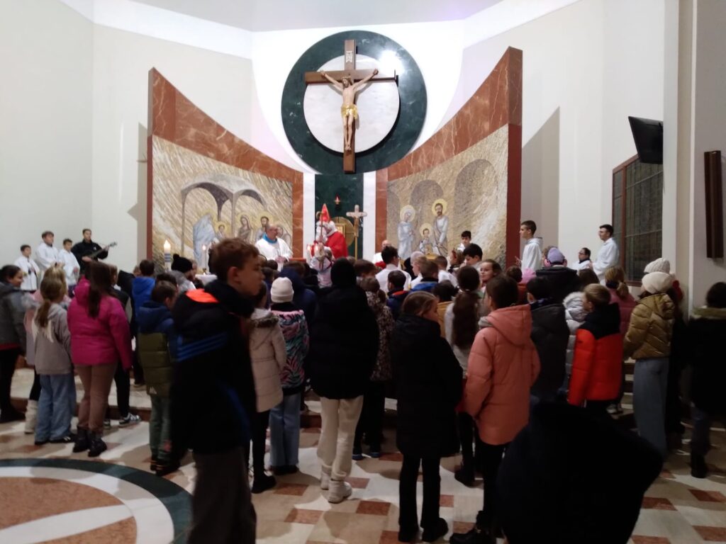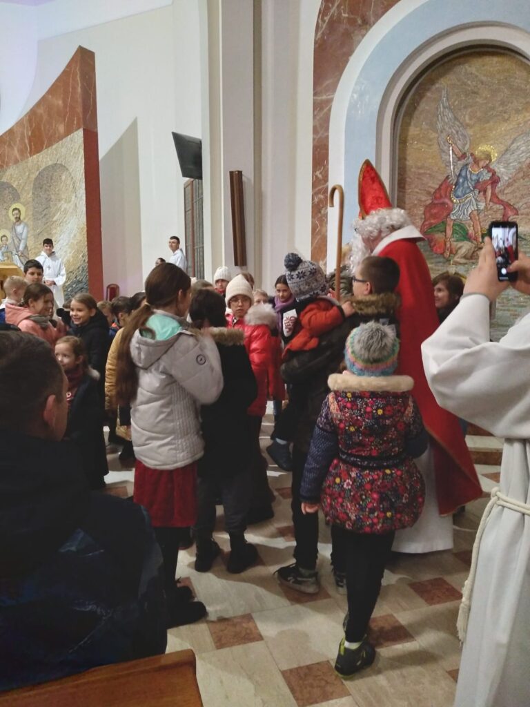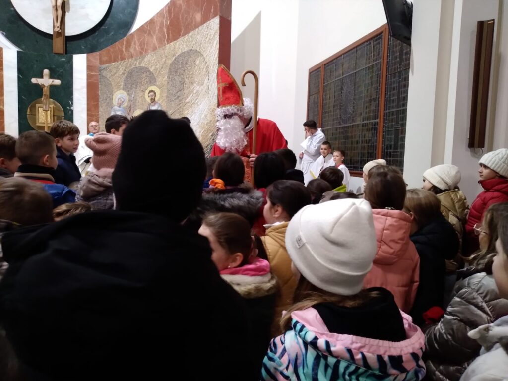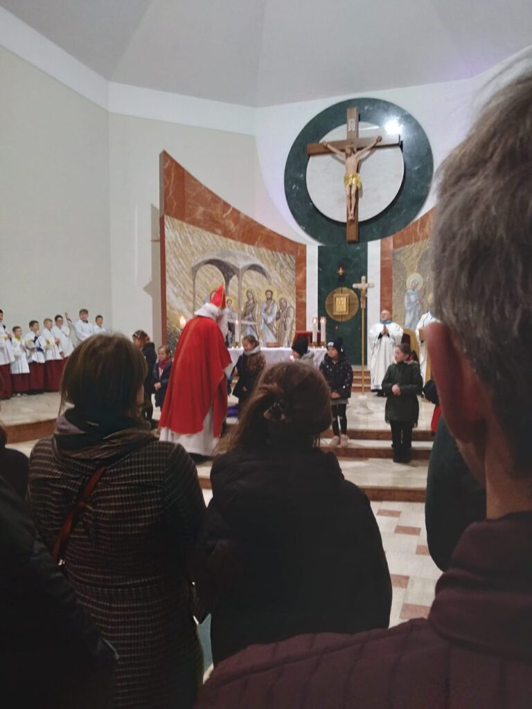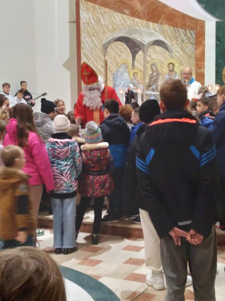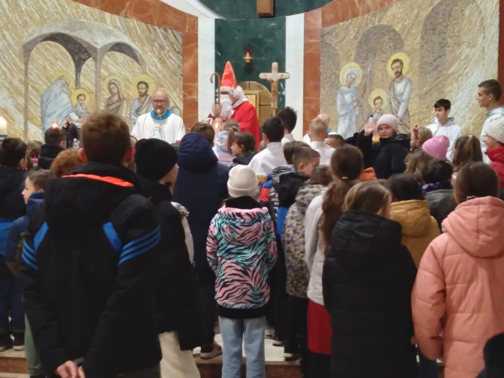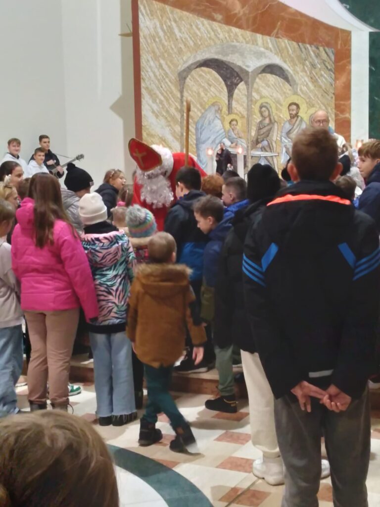 Dziś 6. grudnia Święty Mikołaj zawitał do naszych domów, szkół, na wolsztyński Rynek, a także do Kościoła Świętego Józefa Opiekuna Kościoła Świętego. Przywitał się z dziećmi, które uczestniczyły w roratach, a potem zaprosił do salki kominkowej, gdzie na dzieci czekała gorąca czekolada z bitą śmietaną.