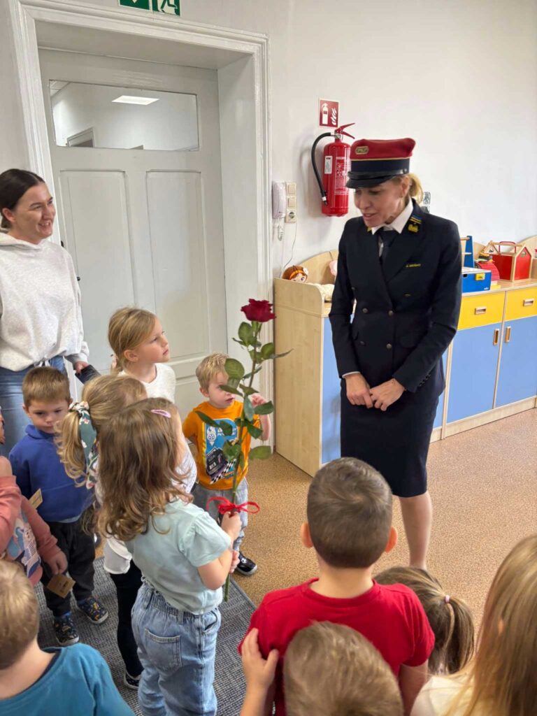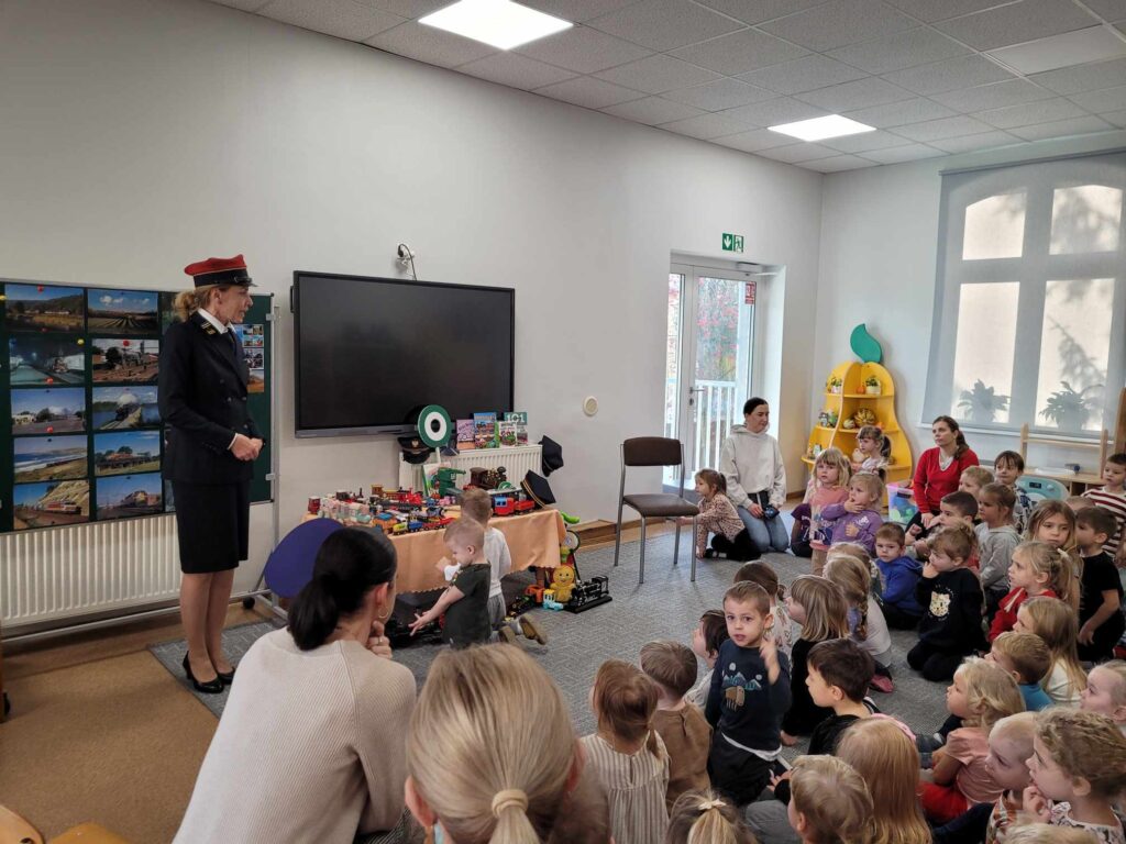 z Przedszkola Nr 1 “Tęczowa Lokomotywa” w Wolsztynie miały okazję gościć panią Kolejarz Joannę