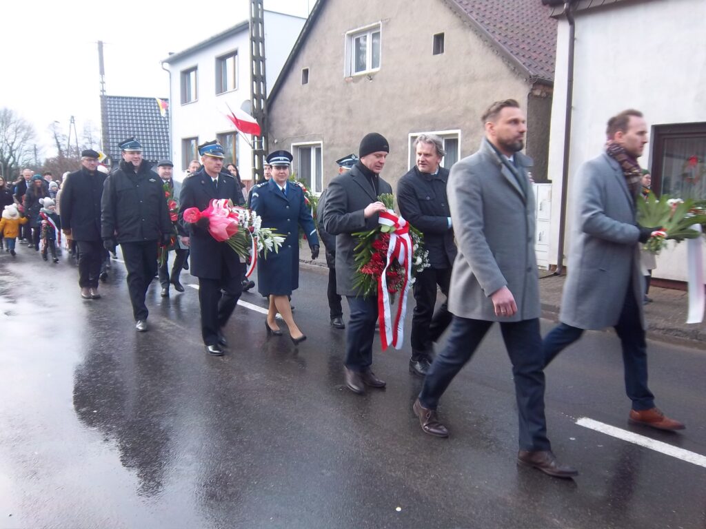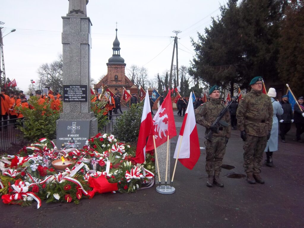 6 stycznia dla mieszkańców Ziemi Przemęckiej to wyjątkowe święto. Właśnie tego dnia, w Święto Objawienia Pańskiego (Trzech Króli) 106 lat temu po Mszy świętej (sumie), z inicjatywy ks. wikariusza Stanisława Kuliszaka, utworzono na Rynku oddział powstańczy – Kompanię Przemęcką liczącą 120 osób. Jak co roku, z inicjatywy władz gminy, odprawiona była w kościele pw. św. Jana Chrzciciela w Przemęcie Msza Święta w intencji Ojczyzny. Wszystkich przybyłych do kościoła powitał ks. proboszcz Jarosław Kaczmarek . „Gromadzimy się w Dniu Objawienia Pańskiego. Pragniemy modlitwą objąć naszych bohaterów – Powstańców .Chcemy ten dar wolnej Ojczyzny przyjąć jako zobowiązanie dobrej pracy i trudu na rzecz wolności naszej Ojczyzny. Dziękuję za tą intencję od władz gminy. Witam wójta, liczne delegacje i poczty sztandarowe, żołnierzy i parafian na tej uroczystości. Liturgia Słowa objawia prawdę, że każdy człowiek jest zaproszony, aby otrzymać zbawienie, poszukiwać tak jak Mędrcy lub po prostu niszczyć tak jak Herod. Mędrcy poszukiwali i poszli aby tę prawdę odkryć. Prawda prowadzi do Jezusa, prawda nas wyzwala. Chcemy uczcić naszych starszych braci w wierze –Powstańców Wielkopolskich. Chcemy podziękować w tym miejscu za to, że nie bali się siebie złożyć w ofierze. Byli młodymi ludźmi. Mogli cieszyć się życiem, a jednak nie bali się złożyć siebie w ofierze. My też możemy siebie złożyć w ofierze przez dobrą naukę, pracę. Dzisiejszy patriotyzm jest inny niż wtedy, bo inne są wyzwania i zagrożenia. Dzięki łasce Bożej możemy się obronić, rozpoznać prawdę od fałszu. Ufamy, że wszyscy oni nasi bohaterowie Powstańcy Wielkopolscy są w domu Ojca. „ Wójt Gminy Przemęt Janusz Frąckowiak, podziękował za odprawioną mszę i przypomniał, że Powstanie Wielkopolskie to jeden z najważniejszych momentów w historii naszego regionu, symbol odwagi, determinacji miłości do Ojczyzny. Mieszkańcy Gminy Przemęt mieli swój wkład w to zwycięstwo poprzez aktywny udział, męstwo, heroizm naszych mieszkańców oraz ich patriotyczną postawę. To, co wyróżniało Powstanie Wielkopolskie, to nie tylko skuteczność militarna, ale przede wszystkim jedność solidarność ludzi, którzy uwierzyli, że mogą zmienić losy swojej Ojczyzny. Ta jedność jest dla nas lekcją na dziś- pokazuje, że razem możemy pokonać nawet największe trudności. Dziś, kiedy wspominamy tamte wydarzenia, oddajemy hołd bohaterem, którzy nie zawahali się poświęcić swojego życia i zdrowia dla przyszłych pokoleń. Powinniśmy pamiętać o nich nie tylko od święta, ale także w codziennym działaniu – pracując dla dobra naszej gminy, dbając o jej rozwój, pielęgnując lokalną historię. Niech pamięć o Powstańcach Wielkopolskich będzie dla nas źródłem inspiracji i motywacji do budowania silnej, zjednoczonej i dumnej społeczności. Cześć i chwała Bohaterom”. Dalsza część uroczystości odbyła się na przemęckim Rynku przy figurze Serca Jezusowego, gdzie umieszczone są na pamiątkowych tablicach nazwiska miejscowych bohaterów. Odczytany został apel poległych. Wybrzmiały nazwiska ppor. J Wróblewskiego, ppor. St. Michalskiego, ppor. St. Siudy, a także ks. St. Kuliszaka. Żołnierze 5 Lubuskiego Pułku Artylerii z Sulechowa oddali salwę honorową. Liczne delegacje przybyłe na uroczystość m.in. senator: J. Libicki, delegacja starostwa Powiatowego i Urzędu Miasta w Wolsztynie, gminy Siedlec, a także całej gminy Przemęt, złożyły wiązanki kwiatów. Zapłonęły znicze. Zebrani odśpiewali Rotę, a towarzysząca całej uroczystości Młodzieżowa Orkiestra Dęta pod batutą Jarosława Przewoźniaka odegrała Pieśń I Brygady Legionów Polskich. Wszystkim uczestnikom uroczystości podziękował wójt Janusz Frąckowiak życząc dalszego świętowania.