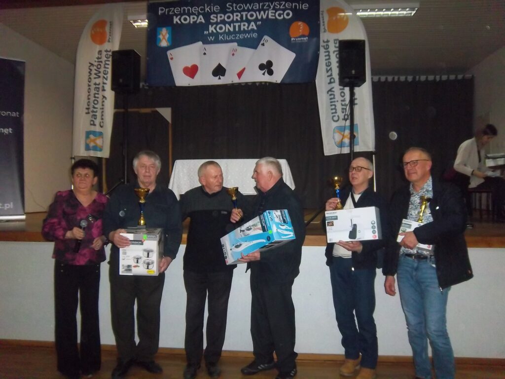 Stowarzyszenie Kopa Sportowego „Kontra” w Kluczewie 23 lutego rozpoczęło zmagania turniejowe pod honorowym patronatem Wójta Gminy Przemęt Janusza Frąckowiaka. Na ten pierwszy turniej z serii Grand Prix przyjechało do Kluczewa 112 graczy, w tym 11 pań. Powitała ich sołtys Jolanta Skoracka i życzyła wszystkim miłego popołudnia, wielu pozytywnych wrażeń dobrej karty. Sędzia główny Jerzy Piechowiak przypomniał najważniejsze zasady gry, a prezes Stowarzyszenia „Kontra” Zdzisław Kaźmierczak witając uczestników podziękował wszystkim za przybycie i ogłosił –„ Turniej uważam za otwarty”. Imponujące wrażenie robiły nagrody dla 20 graczy. Rywalizacja przebiegała w miłej atmosferze i bardzo spokojnie, co potwierdził sędzia główny J. Piechowiak. Wszystkie panie obdarowano kwiatami. Kwiaty wręczono również paniom w kuchni, które zadbały o poczęstunek. Nagrodę specjalną otrzymała Barbara Skórzewska z Kobylnik jako najlepsza z pań. Zwycięzcą turnieju został Józef Bula z Boszkowa, II miejsce zajął Bernard Jakób z Osłonina, III miejsce Henryk Nitsche z Chorzemina, a IV Wojciech Mikołajczak ze Śmigla. Kolejny turniej w Kluczewie 30 marca, a 14 września Turniej o Super Puchar Polski.