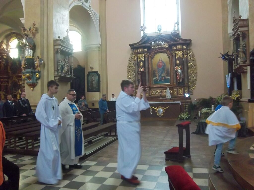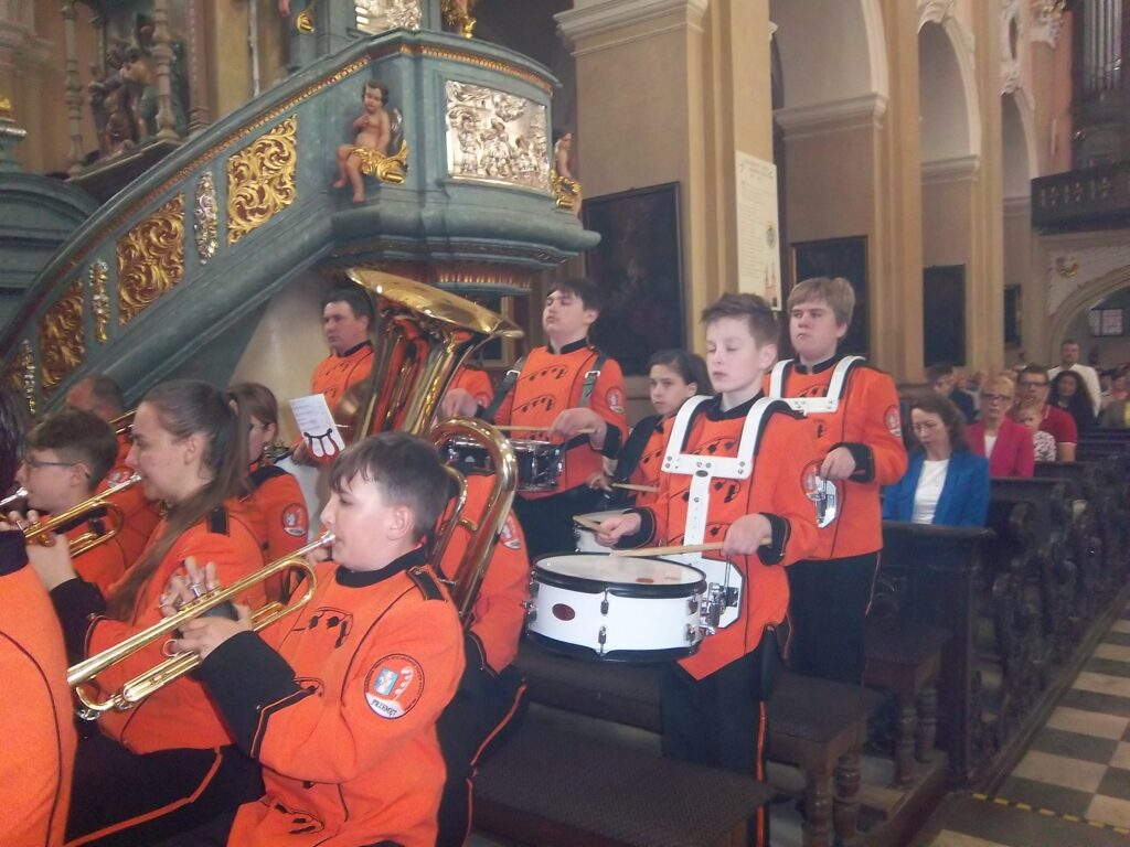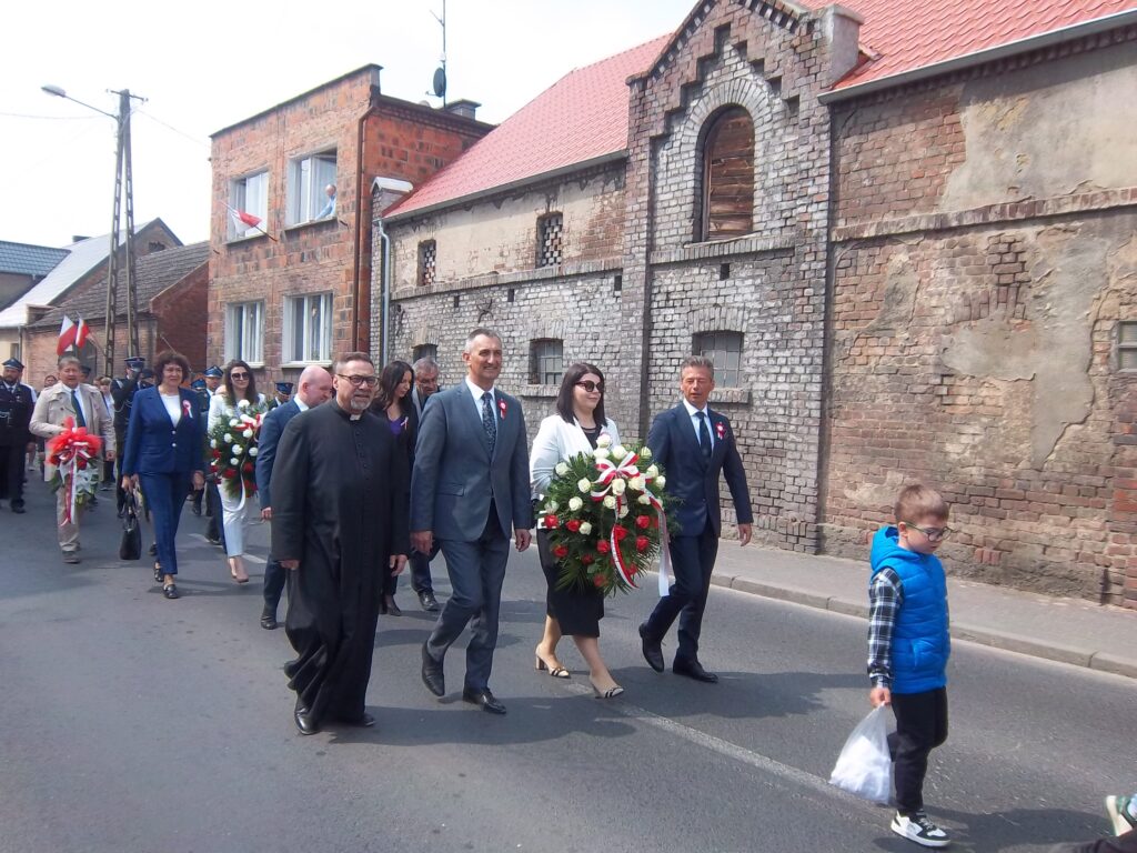 Bardzo uroczyście świętowano w Przemęcie kolejną 234. rocznicę Uchwalenia Konstytucji 3 maja. W 1791 roku Sejm Wielki uchwalił uznawaną za pierwszą w Europie i drugą na świecie, nowoczesną ustawę zasadniczą, która do dziś pozostaje jednym z najważniejszych symboli polskiej państwowości. Uroczystą Mszę świętą celebrował proboszcz parafii pw. Św. Jana Chrzciciela w Przemęcie ks. Jarosław Kaczmarek. „Serdecznie witam wszystkich przybyłych na Mszę świętą- powiedział ks. proboszcz w szczególności władze gminy z wójtem Januszem Frąckowiakiem, radnych, poczty sztandarowe, delegacje, orkiestrę. Dziękuję za intencję tej Mszy Za naszą Ojczyznę, żeby rozwijała się w pokoju, a religia cieszyła się wolnością, przez wstawiennictwo Najświętszej Maryi Panny- Królowej Polski. Podczas kazania odniósł się do Ewangelii, według świętego Jana. Jezus mówi do każdej i każdego z nas ,oto Matka twoja. Weź ją do siebie, zaopiekuj się Nią, a Ona zaopiekuje się tobą. Matka dociera do nas różnymi drogami, cierpi z nami. Wystarczy popatrzeć na historię Polski, Kościoła i Matki Bożej Królowej Polski. Stanowi to jedną całość. To nasza tradycja, nasza tożsamość. Chcemy wartości przekazane nam przez naszych przodków, przekazać młodszym pokoleniom. Módl się i pracuj i weź Maryję do siebie. To ma głębszy sens, bo prowadzi do życia wiecznego. Warto mieć Maryję u siebie. Ora et labora, jeżeli to wprowadzimy w życie, to przyszłe pokolenia też zrobią wszystko, aby ich życie było piękne. Poczują, że Polska Ojczyzna, nasza gmina jest miejscem, w którym chce się żyć. Praca ukształtuje nasze wnętrze. Jan Paweł II powiedział „Musicie od siebie wymagać.” Módlmy się za Ojczyznę, aby cieszyła się wolnością, pokojem i dobrobytem.” Podczas modlitwy polecano Bogu tych, którzy za Ojczyznę i za naszą małą Ojczyznę, walczyli o wolność. Polecano naszą współczesność, aby ze źródeł miłości budować piękno Ojczyzny, abyśmy z Maryją budowali lepsze jutro. Druga część uroczystości odbyła się na Przemęckim Rynku, gdzie liczne delegacje złożyły wiązanki kwiatów i zapaliły znicze pamięci. Wójt Gminy Przemęt Janusz Frąckowiak podziękował ks. proboszczowi za mszę świętą i modlitwę, wszystkim zgromadzonym za obecność i tym, którzy przyczynili się do uświetnienia tej uroczystości. „To niezwykle ważny dzień w historii Polski. Nasi przodkowie oddawali życie za wolność.1000 lat temu Bolesław Chrobry został królem a tu stała kasztelania. Życzę miłej rodzinnej atmosfery i zdrowia na dalsze świętowanie”. Uroczystość uświetniła Młodzieżowa Orkiestra Dęta pod batutą Jarosława Przewoźniaka i Grupa Mażoretek „Vena”, które nie tylko pięknie się prezentowały, ale również przedstawiły pokaz swoich artystyczno- tanecznych możliwości.