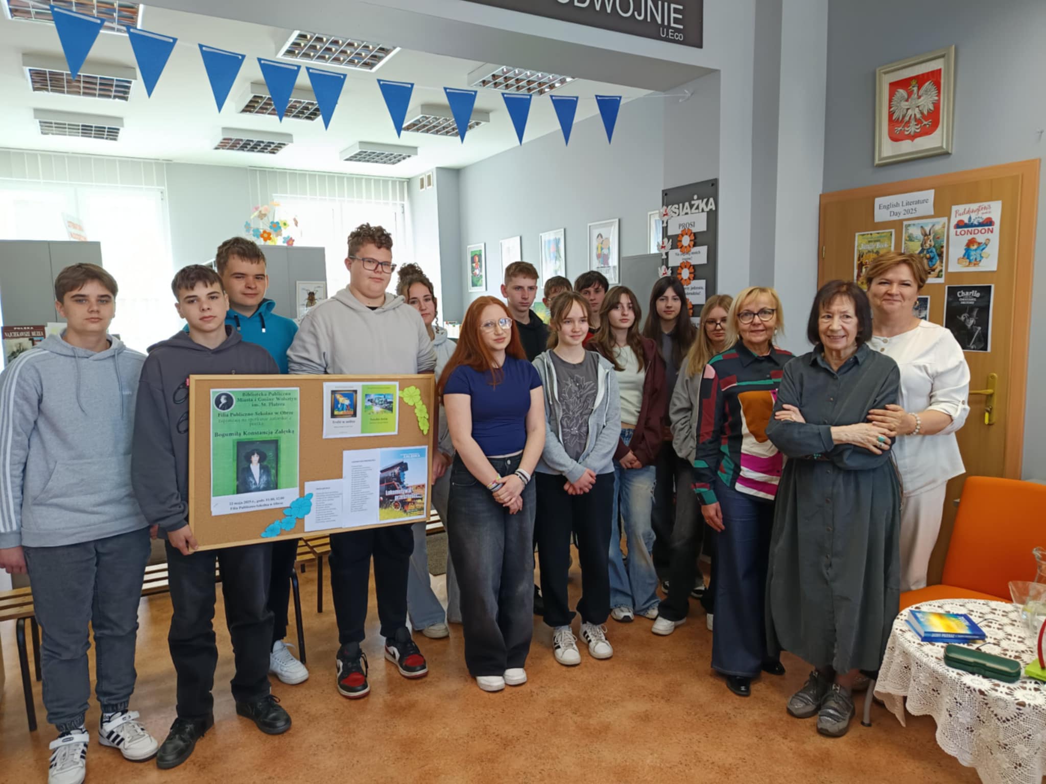 Pani Bogumiła Konstancja Załęska była gościem Biblioteki Publiczno-Szkolnej w dniu 22 maja. Uczestników spotkania z poezją powitał Dyrektor Zespołu Szkolno- Przedszkolnego pan Paweł Rychły. Sylwetkę poetki przybliżyła bibliotekarka Justyna Skrzypczak. W trakcie spotkania autorskiego, poetka zapoznała uczniów klas ósmych Zespołu Szkolno-Przedszkolnego w Obrze ze swoją twórczością, opowiedziała o specyfice pracy autora i o początkach działalności pisarskiej. Uczniowie z wielką uwagą słuchali wierszy czytanych przez autorkę. Poetka podzieliła się również z młodzieżą swoimi przemyśleniami, emocjami, trafnymi spostrzeżeniami na różne życiowe tematy. Było to niezapomniane spotkanie, za które młodzież podziękowała pisarce słodkim upominkiem i kwiatami.