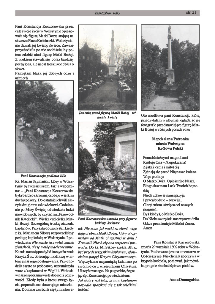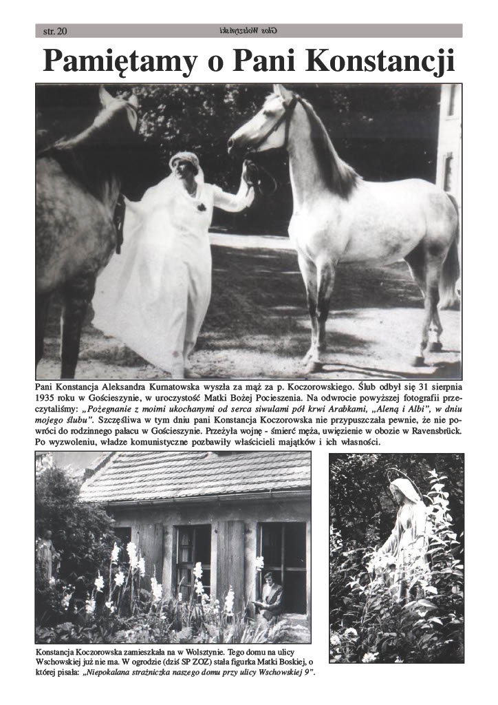 W piątek 26 września w Bibliotece Publicznej Miasta i Gminy Wolsztyn im. St. Platera odbędzie się promocja książki Ireneusza Rutkowskiego Tunia, wspomnienie Konstancji Aleksandry z Kurnatowskich -Koczorowskiej. Przypominamy artykuł z numeru 10/2004 roku.