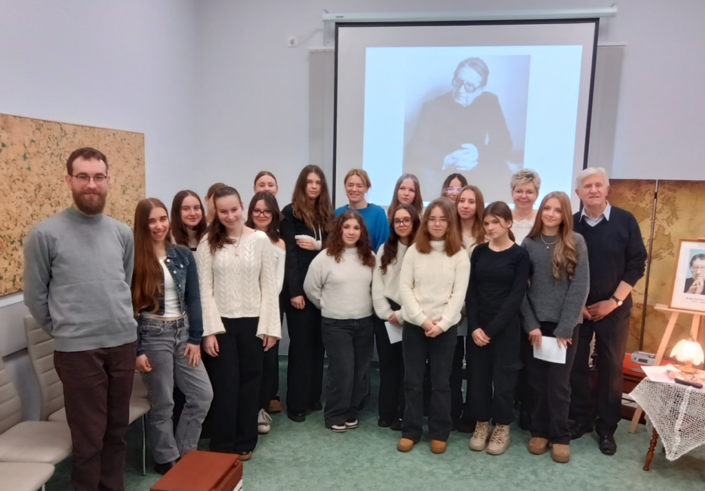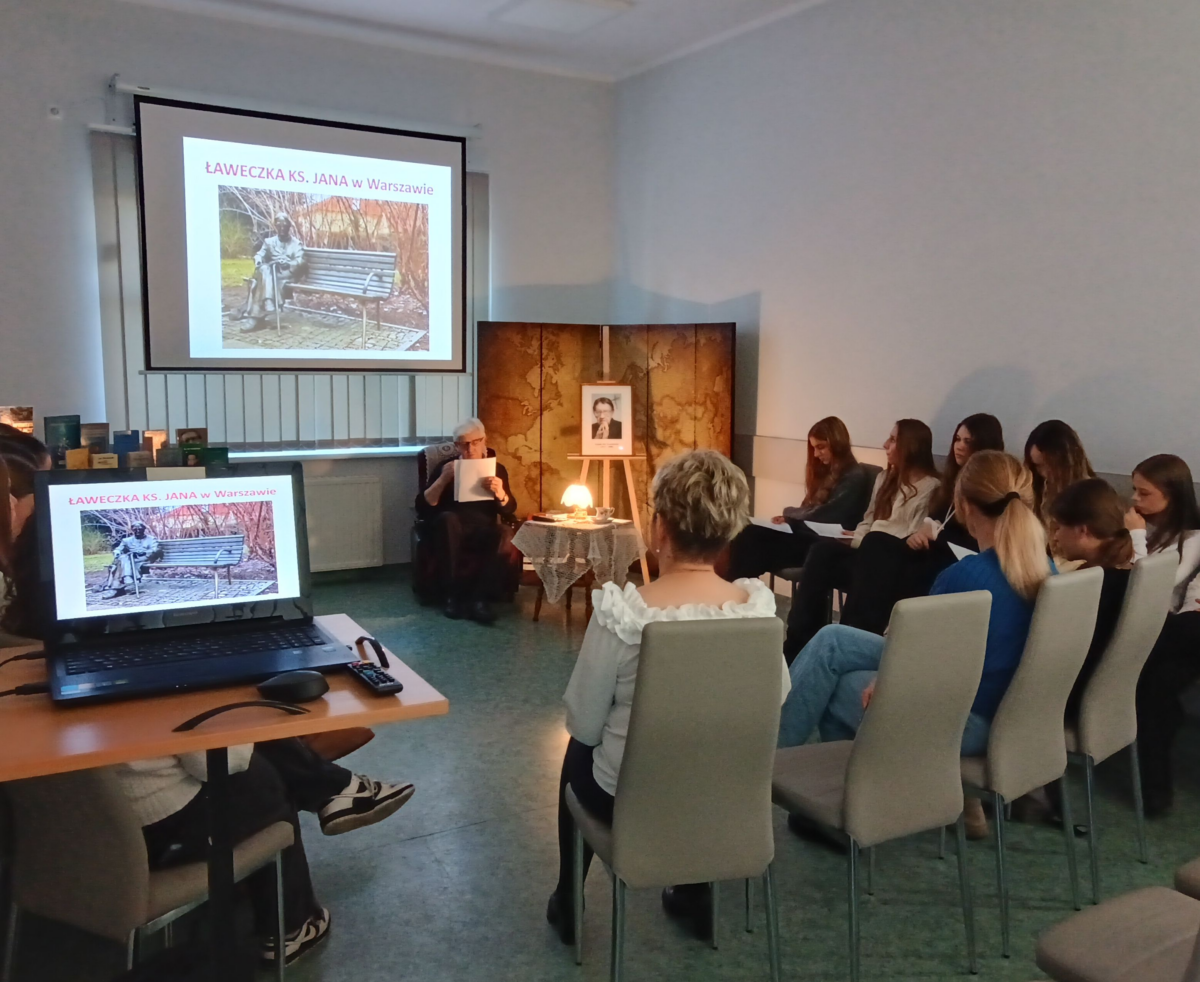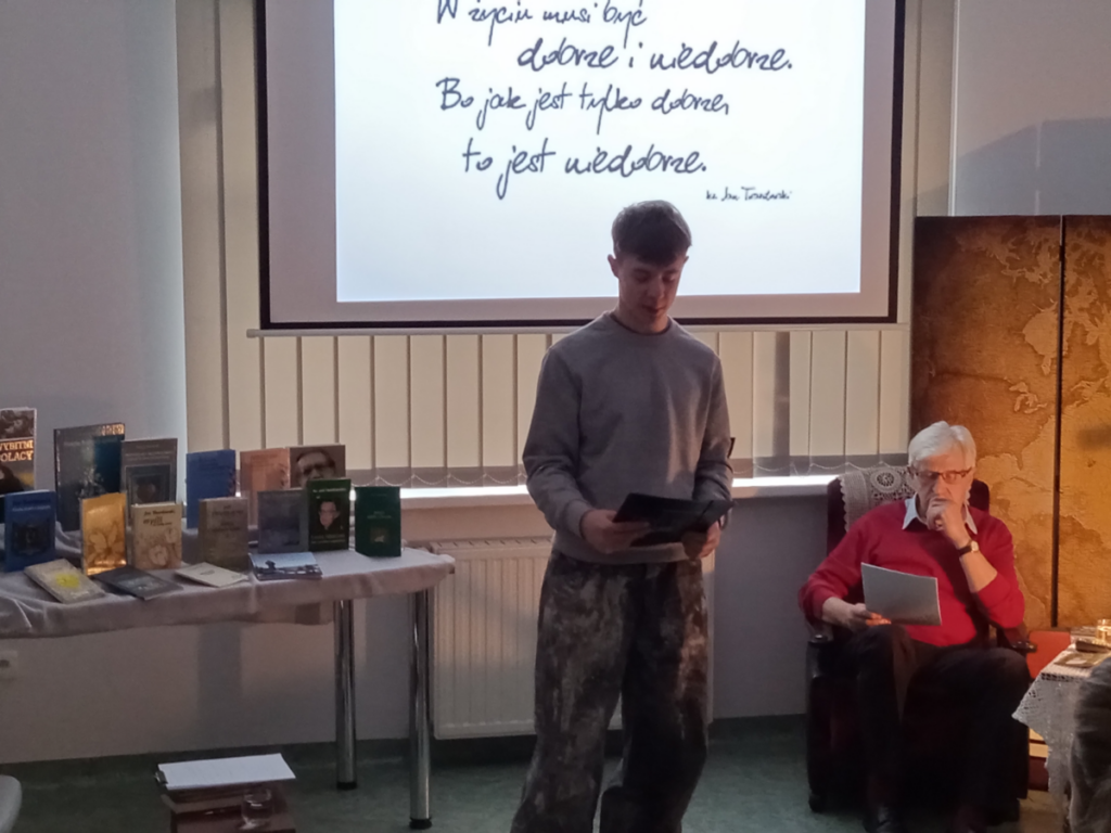 18 stycznia minęła dwudziesta rocznica śmierci księdza Jana Twardowskiego, jednego z najpopularniejszych i najbardziej chyba kochanych dziś, współczesnych polskich poetów. Od lat poprzez swoją poezję wskazywał on innym drogę do nieba. Tamtego dnia 2006 roku, poszedł nią sam… Z tej okazji 28 i 29 stycznia, w Bibliotece Pedagogicznej w Wolsztynie, odbyło się spotkanie z uczniami klasy I wolsztyńskiego Liceum, oraz III klasy Technikum, poświęcone życiu i twórczości tego poety. Uczniom, którzy w trakcie spotkania prezentowali niektóre wiersze poety, towarzyszyli ich klasowi wychowawcy – mgr Jagoda Jasionowska oraz mgr Janusz Mrozkowiak. Organizatorami spotkania było Katolickie Stowarzyszenie ,,Civitas Christiana” i Biblioteka Pedagogiczna. Ksiądz Jan Twardowski był poetą niezwykłym, który łamał powszechne pojęcie o poezji. Nie było w niej metafizyki, niezrozumiałej symboliki, rozbudowanych metafor, epitetów czy surowego dydaktyzmu. Był w niej przede wszystkim człowiek, otwarty na wymiar Bożej miłości. Była prostota, niewinność, łagodność, czasami subtelna ironia, humor i ciepła anegdota. Nazywał rzeczy po imieniu, zachwycony różnorodnością barw,, zapachów i dźwięków, przenosił czytelnika w świat krajobrazów, stanów ducha i kontemplacji. Nie zasłaniał ludziom Boga, nie gromił, ale w mądry i subtelny sposób uczył, że nie ma wiary oprawionej w ramki, nie ma w życiu sytuacji bez wyjścia…Przywracał wiarę w Boga, chroniąc nas od rozpaczy i beznadziejności. Nie zasłaniał Boga sobą, on Go sobą odsłaniał, jak w tym wierszu, zatytułowanym ,, Żebym nie zasłaniał sobą siebie” Urodził się w Warszawie w ,,Dzień Dziecka” – 1.06.1915 roku. Może dlatego tyle potem pisał o dzieciach. Ukończył renomowane gimnazjum imienia Tadeusza Czackiego. W 1936 zdał maturę, zaś w 37 rozpoczął studia polonistyczne na Uniwersytecie Warszawskim. W tym samy roku wydał swój pierwszy tomik wierszy, zatytułowany ,,Powrót Andersena”. Podczas wojny walczył jako żołnierz w Armii Krajowej; brał udział w Powstaniu Warszawskim, choć nigdy i nigdzie o tym nie wspominał. W 1945 roku a więc w wieku 30 lat wstąpił do seminarium duchownego w Warszawie. Święcenia kapłańskie przyjął 4 lipca 1948 roku a rok wcześniej ukończył studia polonistyczne, pisząc pod kierunkiem prof. Wacława Borowego prace magisterską o ,,Godzinie myśli” Juliusza Słowackiego… Jego pierwszą parafią był Żbików, gdzie pracował w szkole specjalnej. To dla tych upośledzonych dzieci napisał wiersz ,,Do moich uczniów.”